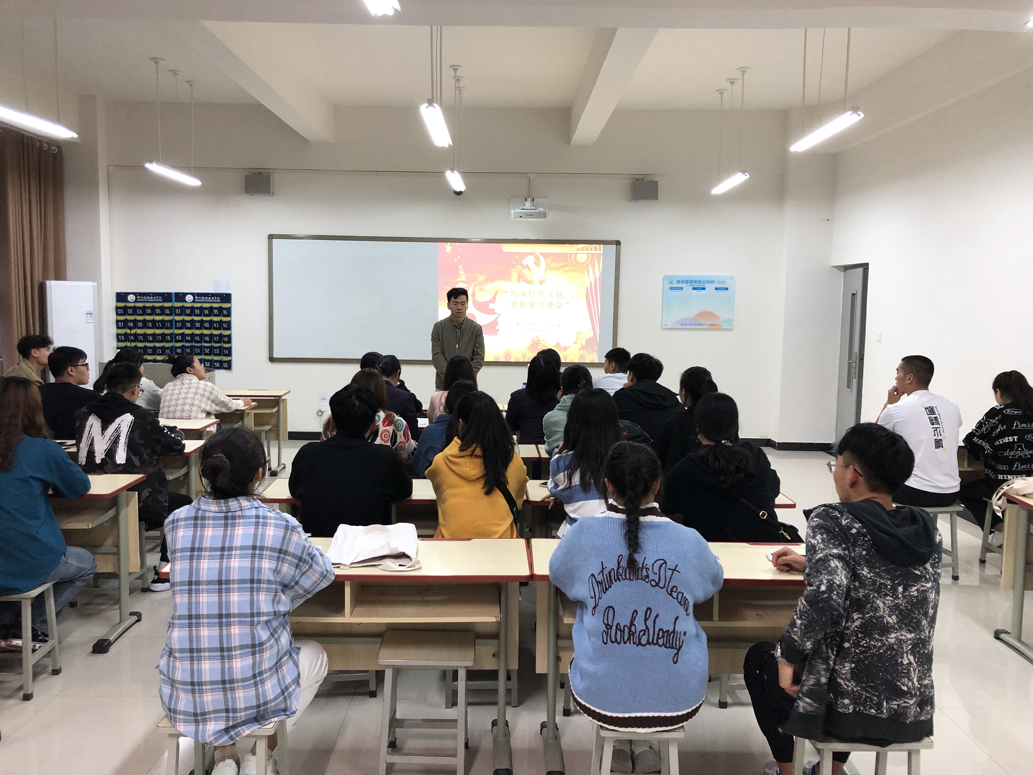 牛亚飞老师首先给同学们讲了红色文化是在革命战争时期由中国老一代共产党人开创的集聚中国特色的先进文化,其中蕴含了丰富的革命精神,需要我们当代大学生进行思考和领悟,而一代又一代的青年工作者用自己的热情和拼搏换来中国红色文化的蓬勃发展。牛老师讲到红色文化的传承需要每一位青年大学生的努力,并提出以下几点要求:传承红色记忆,深入学习一系列红色精神,不断汲取前进的动力,坚定听党话、跟党走的信念;铸就良好品格,争当践行社会主义核心价值观的模范,树立报效祖国的远大志向;争做时代新人,增强个人本领,始终铭记复兴大任,锲而不舍,坚定执行。