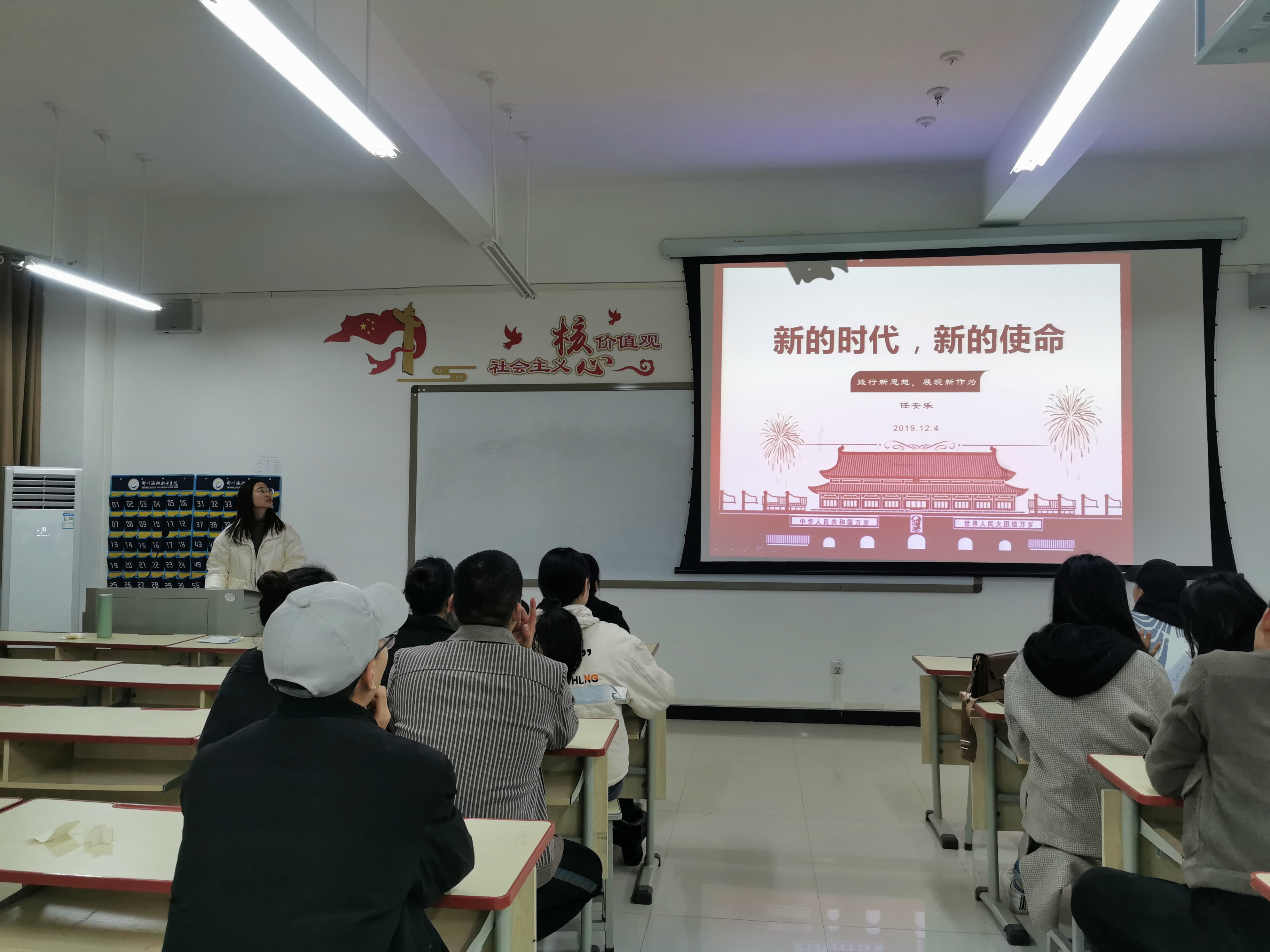 牛老师首先和学生讲了什么是新时代,新时代是继续夺取中国特色社会主义伟大胜利的时代,是决胜全面建成小康社会、进而全面建设社会主义现代化强国的时代。处于新时代的我们,要坚持我们的使命,要学会思考与学习,不断进取,完善自身。