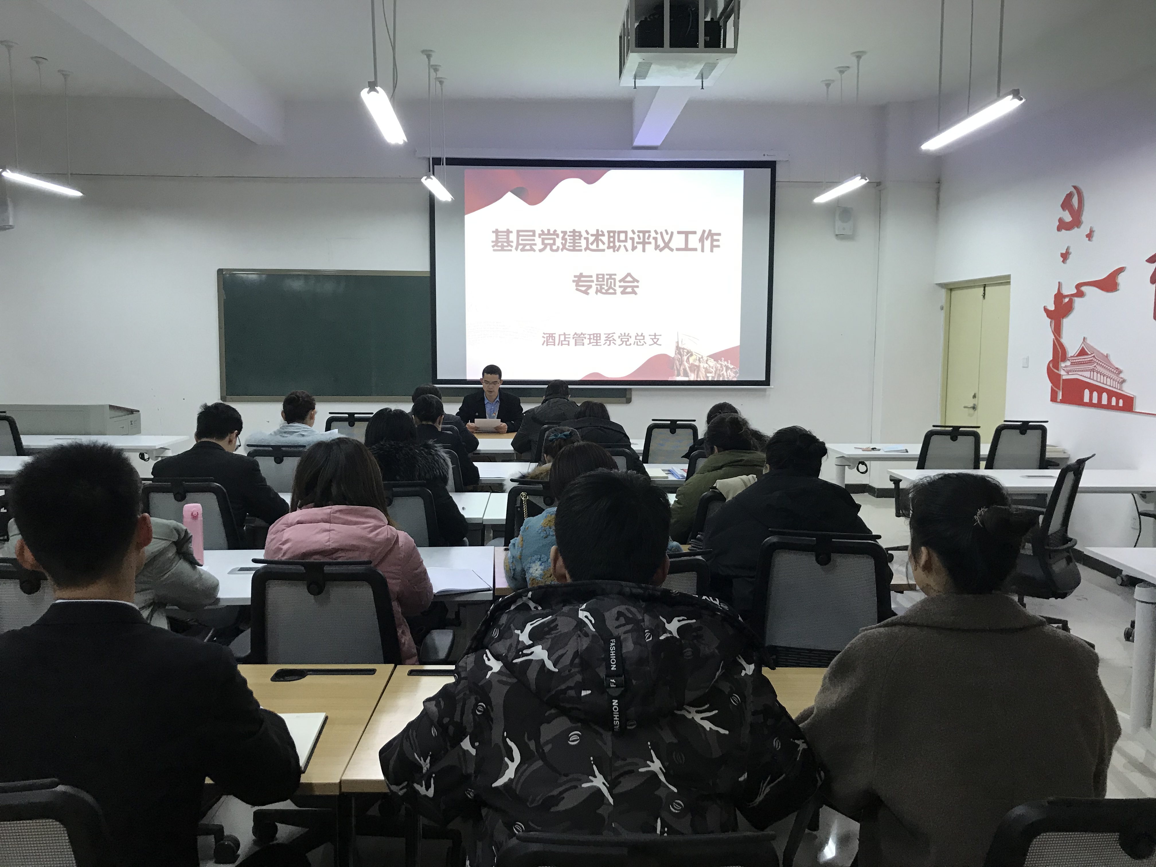 为深入贯彻落实党的十九大精神和习近平总书记关于落实党建工作责任制重要精神,按照学院党委的统一部署,酒管学院党总支于12月25日下午在党员活动室组织全体党员召开了2019年度酒管学院基层党建述职评议会议,会议由党总支副书记陈海彬主持,学校党委书记李书峰受邀参会。