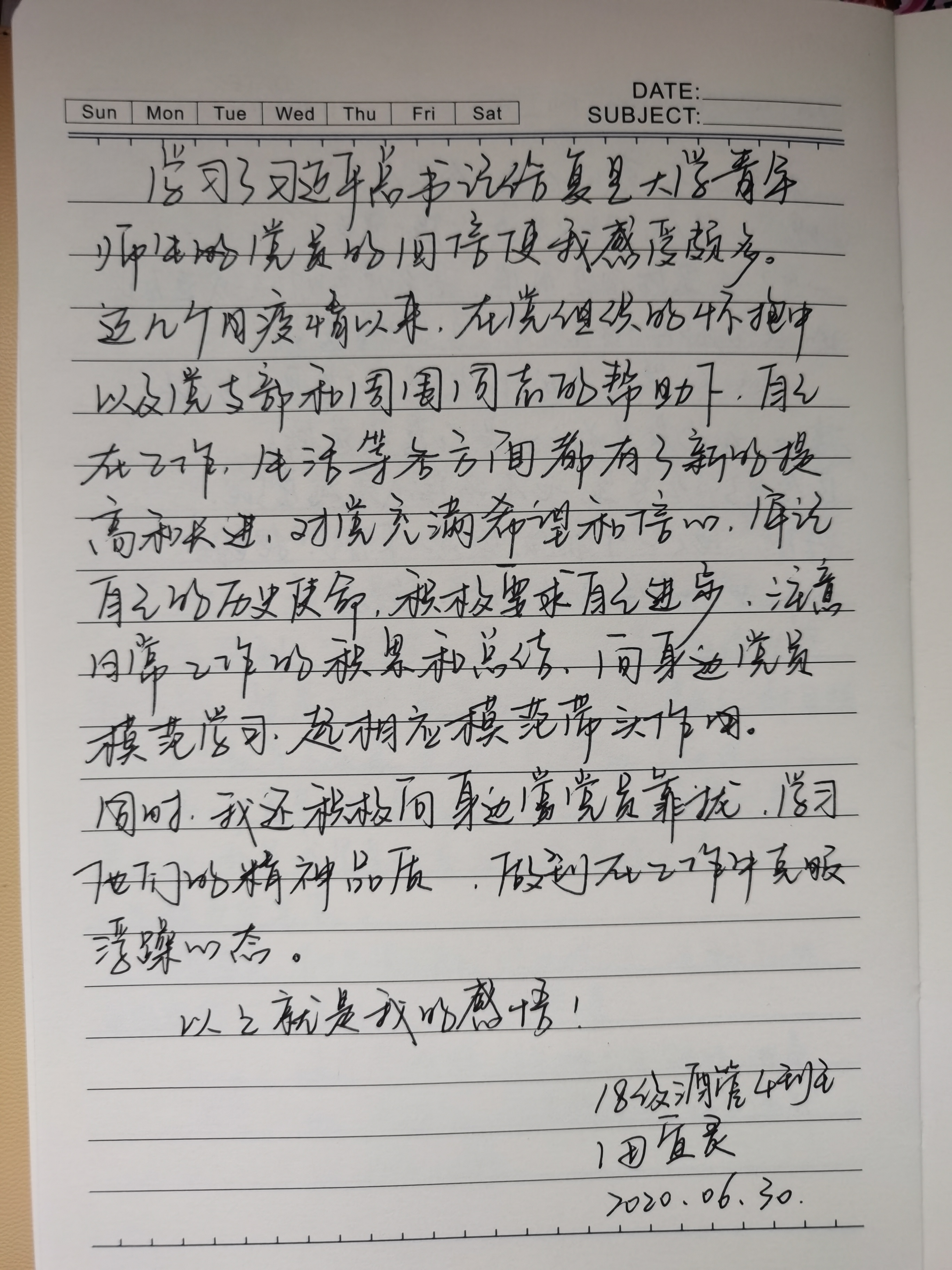 6月29日,学生党支部在全体师生党员、预备党员、入党积极分子中开展了学习“习近平总书记给复旦大学青年师生党员回信”活动。