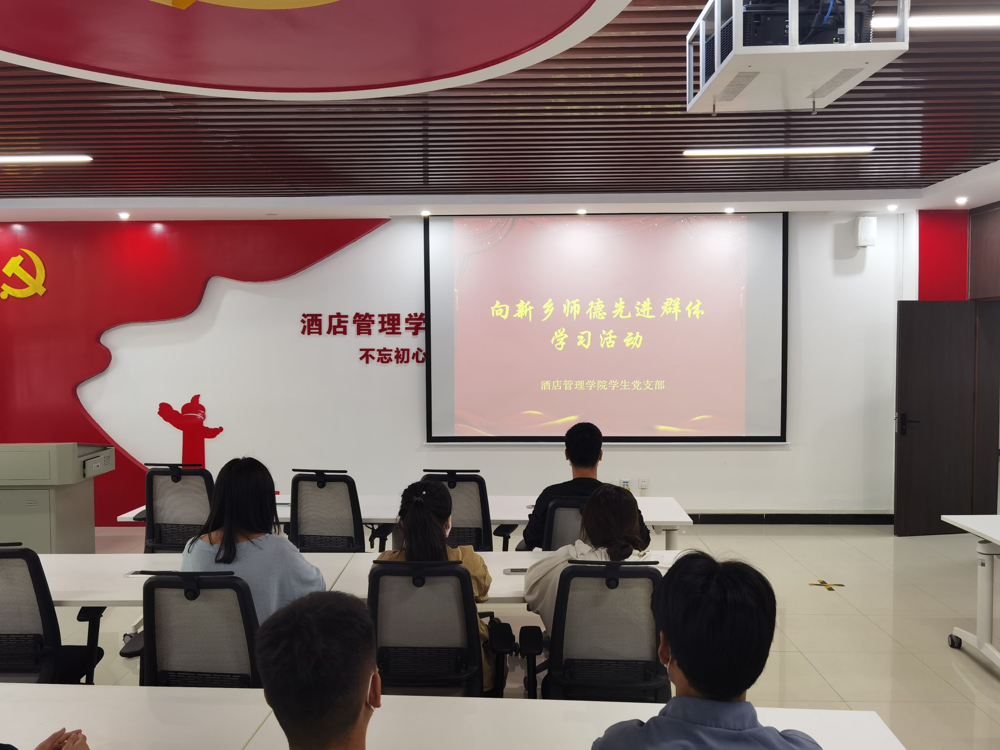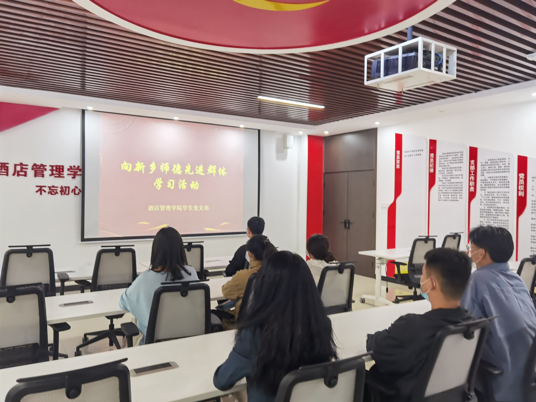为持续推进新时代师德师风建设,更好的发挥师德先进群体的典型示范作用,大力弘扬高尚师德师风,提高广大教师师德水平和职业素养,以优秀的师德师风水平迎接党的二十大胜利召开,酒店管理学院学生党支部组织开展向“新乡师德先进群体”学习活动。