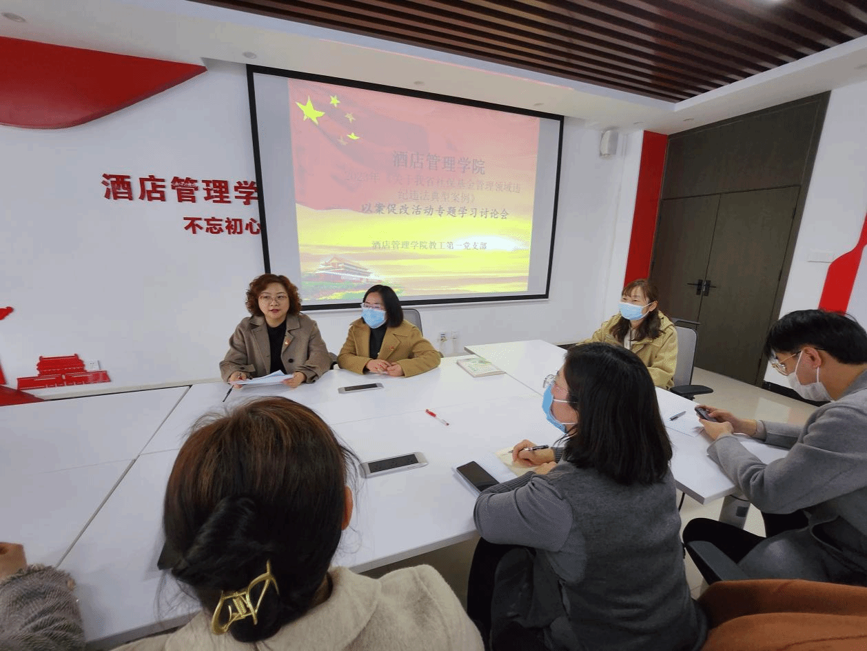 为深入贯彻落实全面从严治党,持之以恒正风肃纪,筑牢廉洁思想防线,2月16日,酒店管理学院教工第一支部在党员活动室召开《关于我省社保基金管理领域违纪违法典型案例》以案促改专题学习会议。会议由支部书记张媛同志主持,支部全体党员参加。