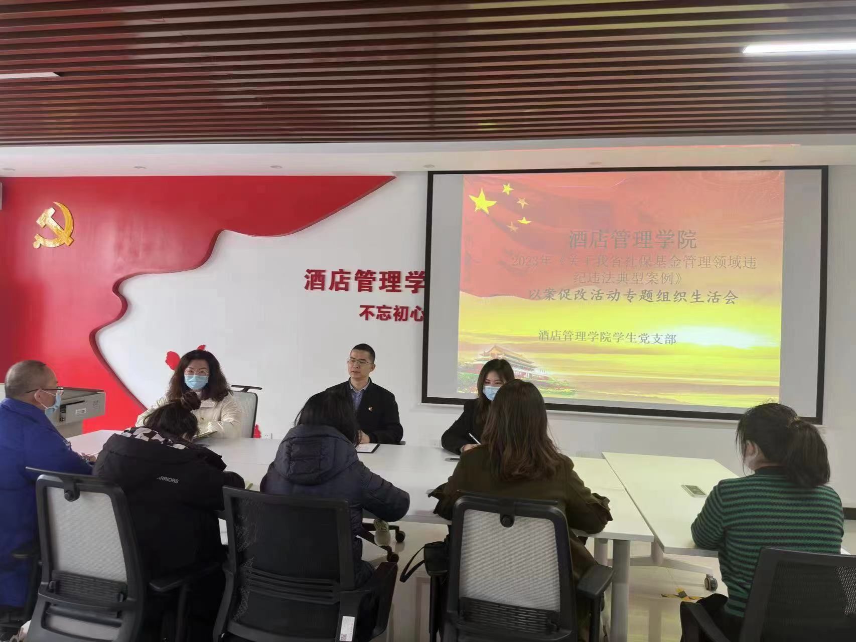 为深入贯彻落实全面从严治党,持之以恒正风肃纪,筑牢廉洁思想防线,2月22日下午,酒店管理学院学生党支部召开围绕社保基金管理领域违纪违法典型案例以案促改专题组织生活会。