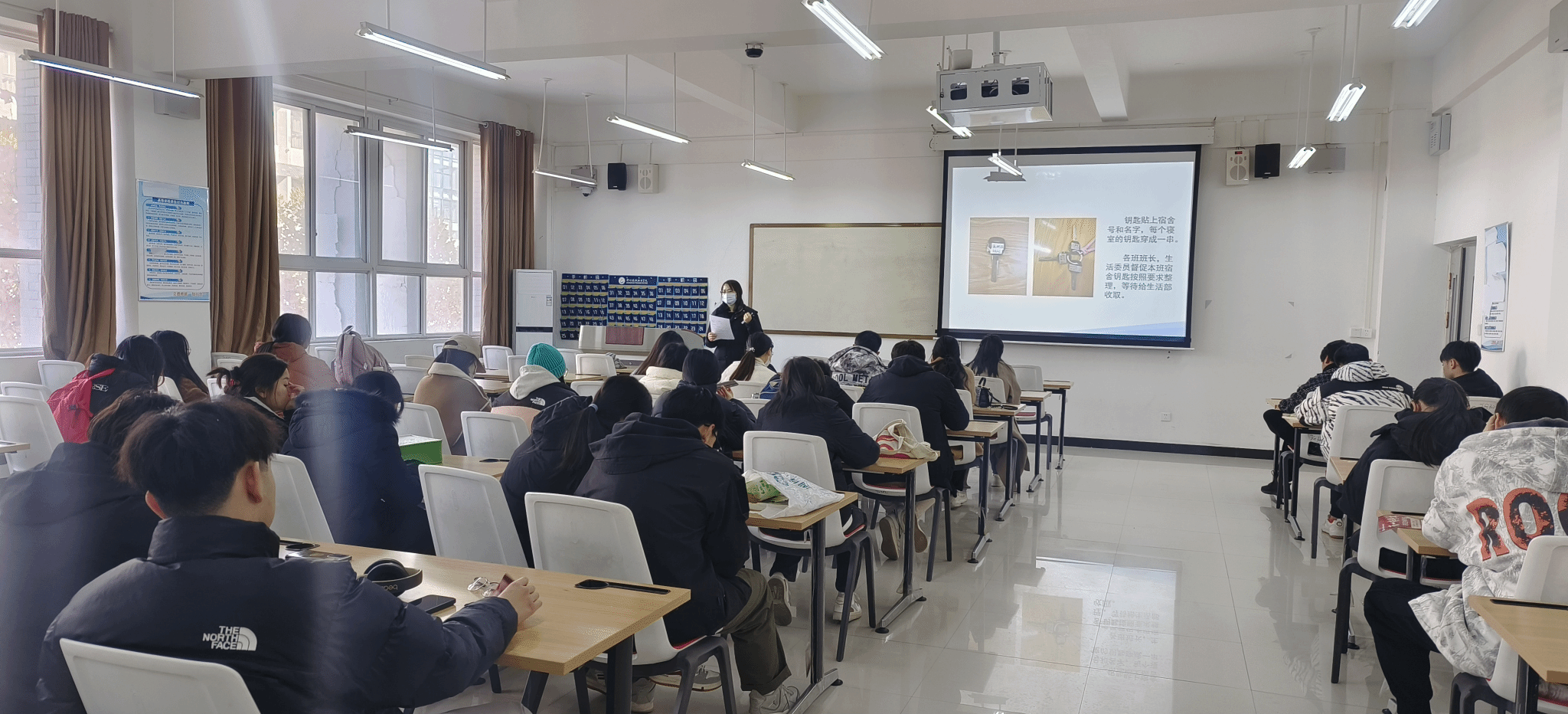生活部部长李旺泽同学对学生离校退宿流程进行详细说明,并提醒同学们离校前坚持遵守宿舍管理规定,做到有始有终,给校园生活画上完美的句号。