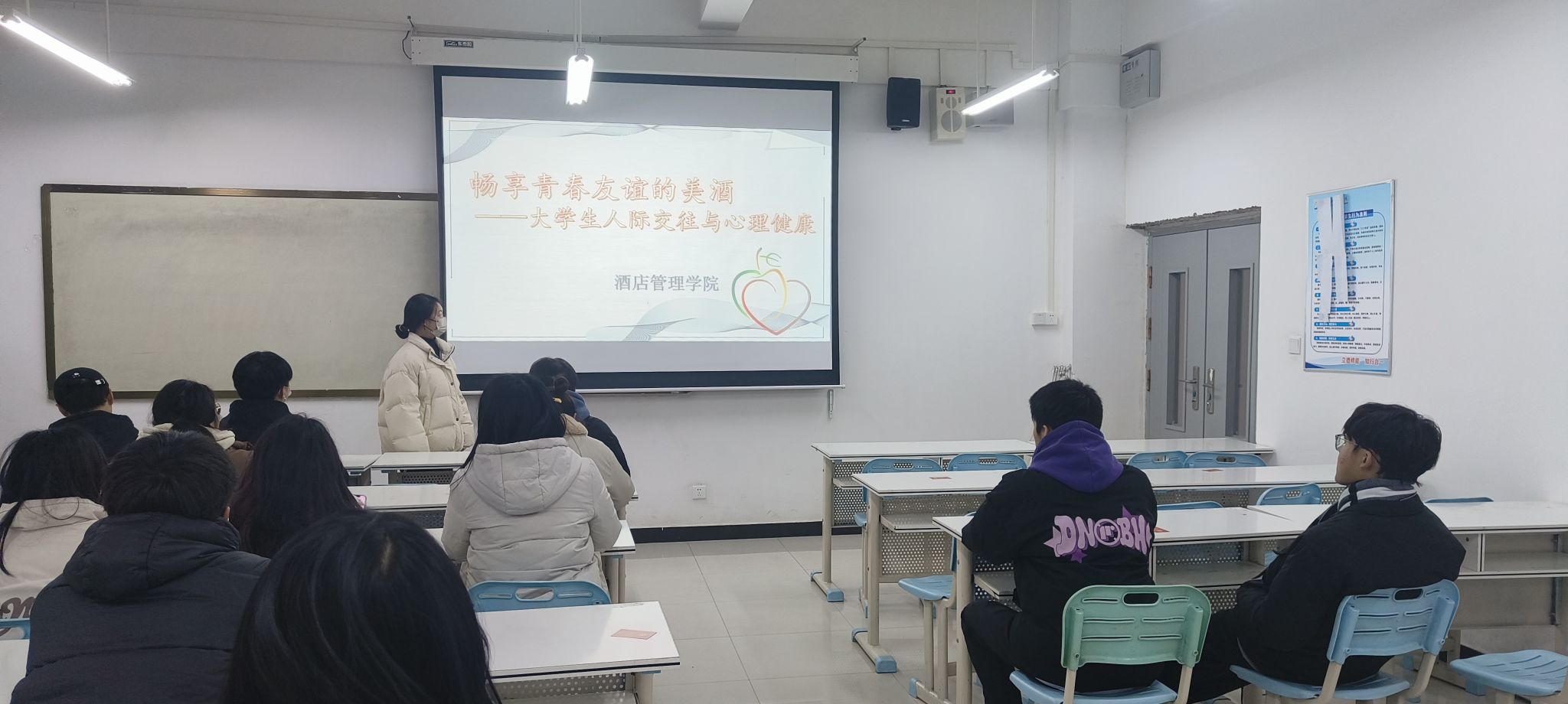 为了进一步加强对心理委员的培训,指导心理委员更好地帮助同学们解决“人际关系与沟通”问题,2023年12月21日酒店管理学院在2B教学楼102教室开展主题为“人际关系与沟通”的心理讲座,讲座由酒店管理学院二级心理辅导站闫艳老师主讲。