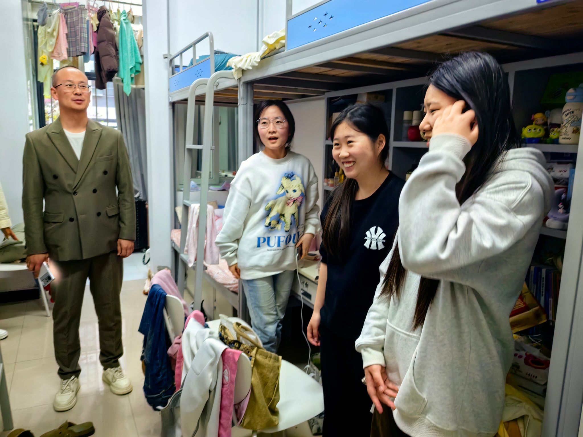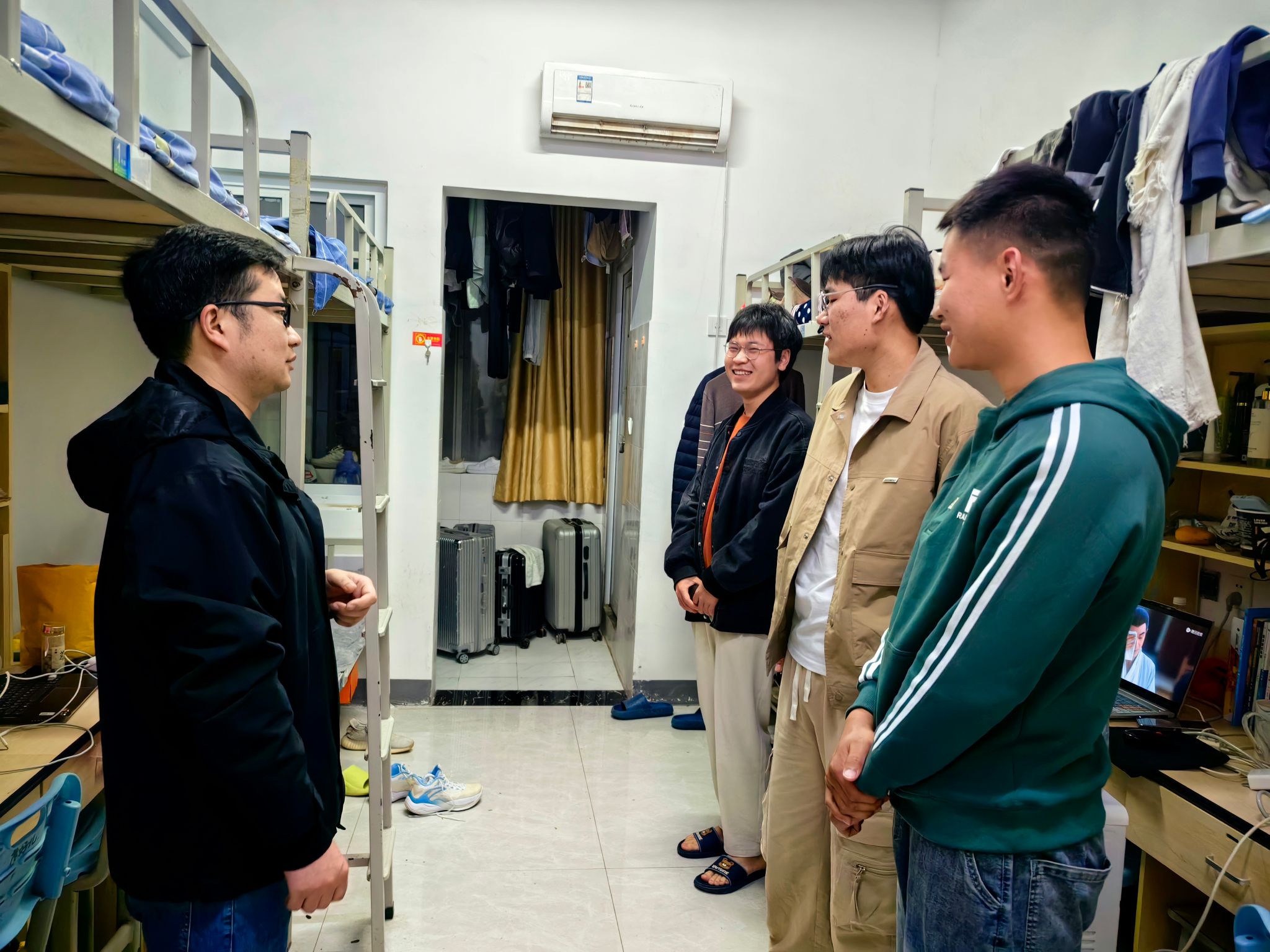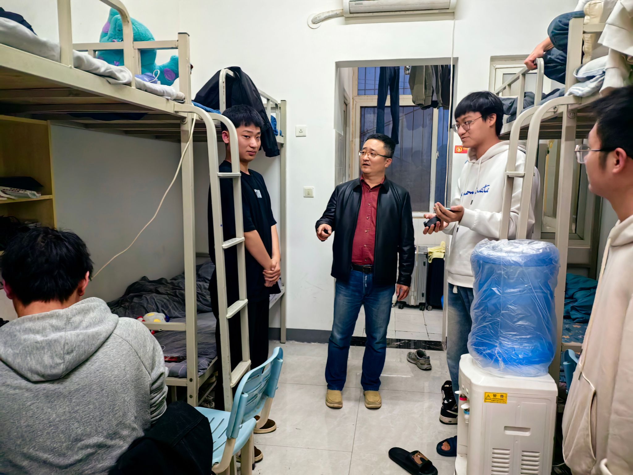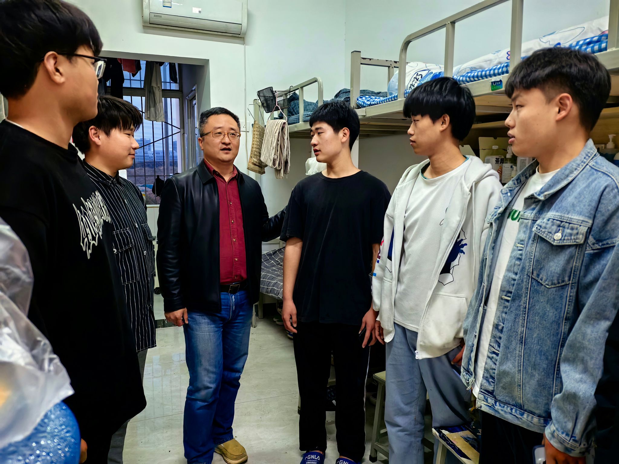 走访中,郭防与学生们亲切交谈,对学生的思想状况、学习生活、心理状态等方面进行了深入细致的交流,并殷切嘱咐同学们,安全无小事,需要牢记在心,希望同学们能够自觉遵守学校规章制度,保持良好的学习生活秩序,共同营造一个健康和谐的宿舍环境。