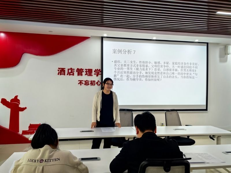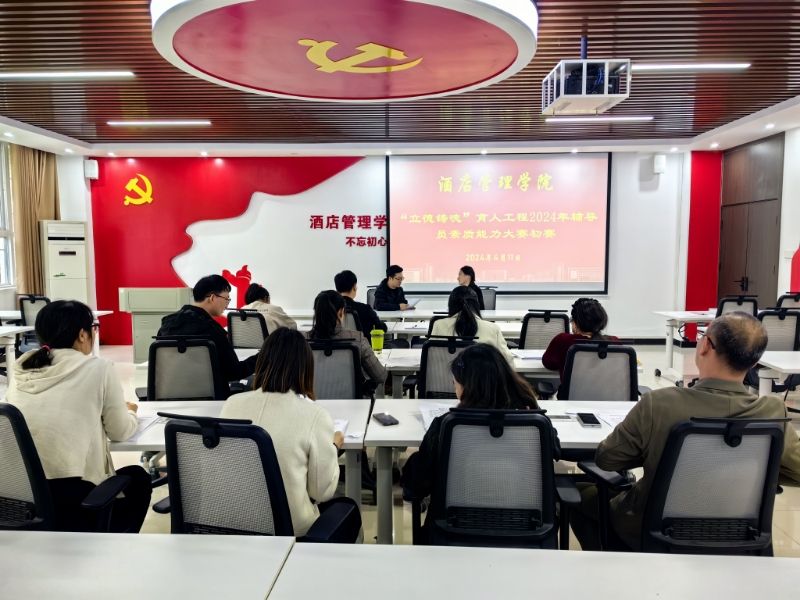 为扎实推进学院“立德铸魂”育人工程,提升学院辅导员的理论水平、职业能力和专业素养,促进辅导员之间学习交流,着力打造政治素质过硬、工作作风优良、业务能力精湛、育人水平高超的辅导员队伍,2024年4月12日下午,酒店管理学院在党员活动室举行“立德铸魂”育人工程2024年辅导员素质能力大赛初赛。酒店管理学院党总支书记郭防、团总支书记侯宁波出席活动,学院全体专兼职辅导员参赛。