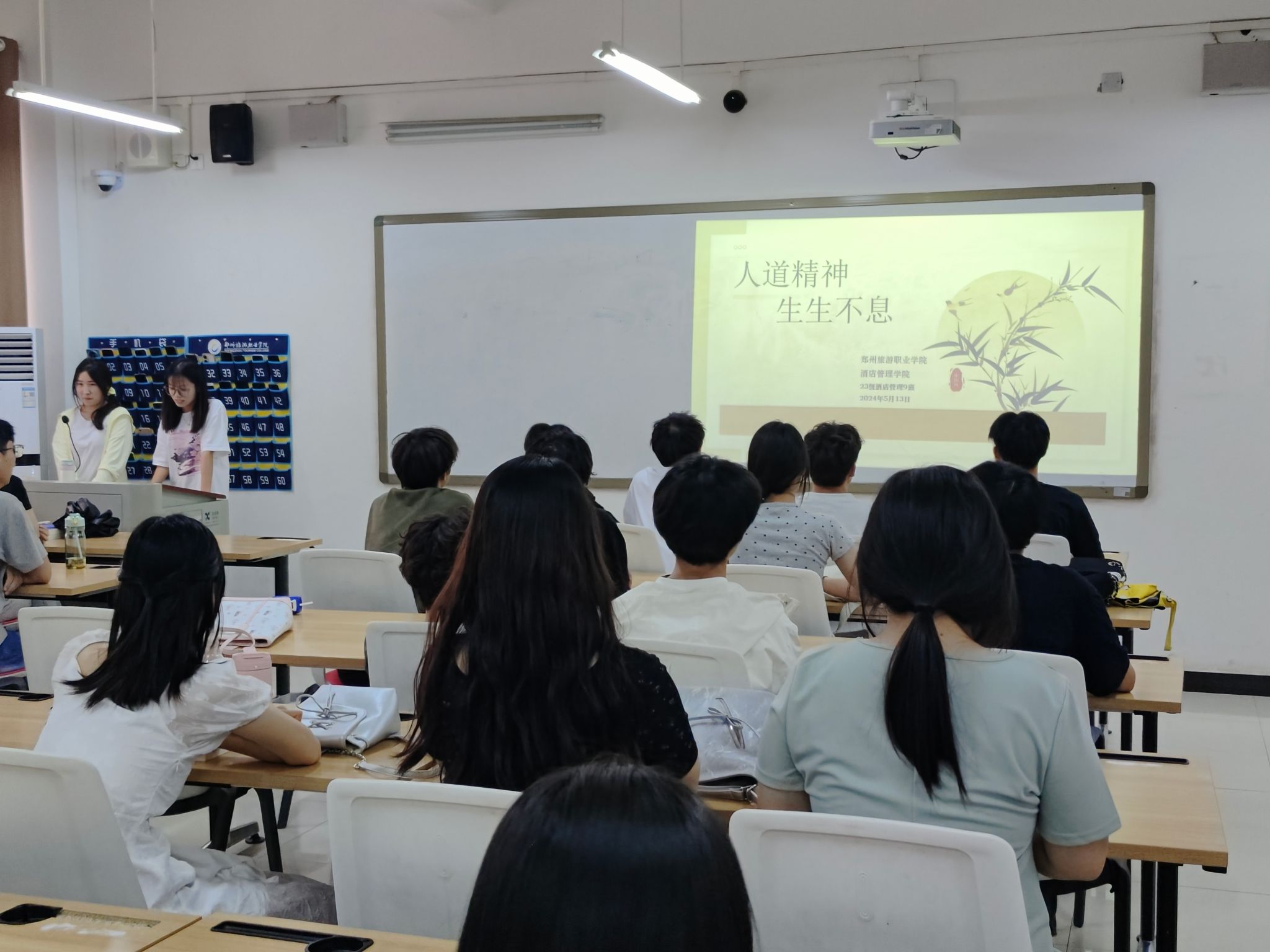 为纪念第77个“世界红十字日”,弘扬人道主义精神,提高学生们的爱心和社会责任感,让每个学生认识到关爱他人就是关爱自己,使博爱精神在校园中得以传承和发扬。酒店管理学院于本周在各班组织召开了“人道精神,生生不息”主题班会。