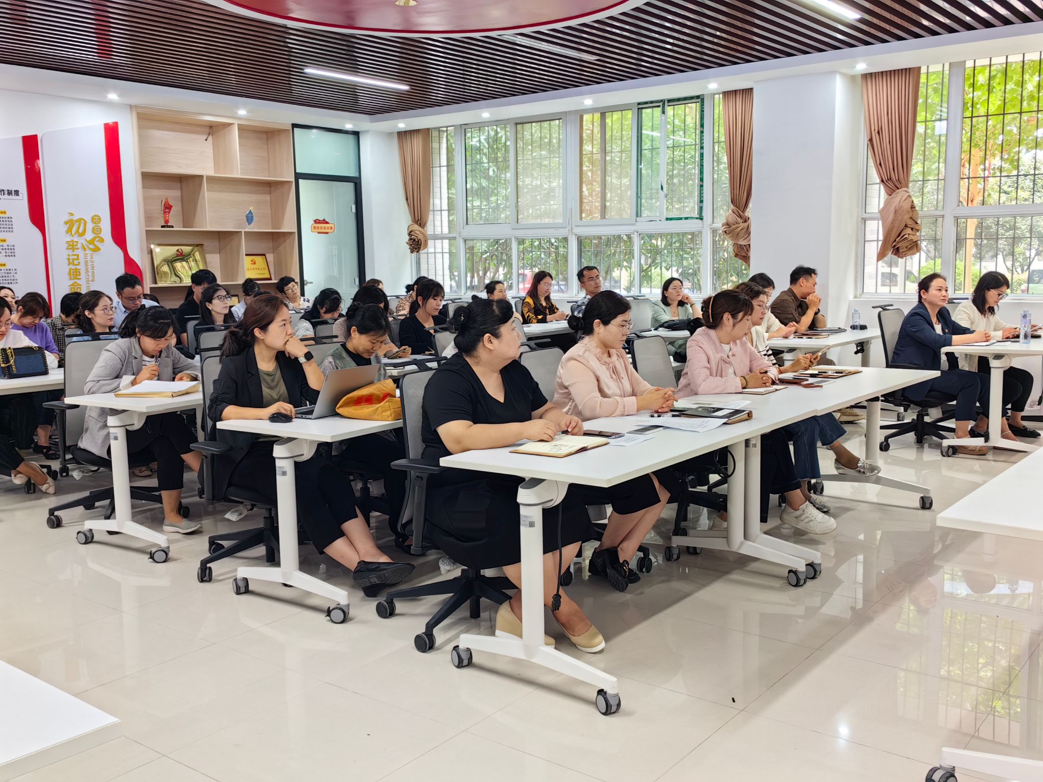 肖靖进行了师德师风专题培训。她以教育家陶行知先生的一句名言“学高为师,身正为范”引入培训主题,为教师明确了未来发展的方向,即本真、质朴、正直。此次培训主要涵盖三个重点内容:一是始终明晰为谁培养人以及培养什么样的人这一关键问题,以育人作为根本目标;二是始终保持与时俱进的姿态,坚持终身学习,要求教师具备三大优势,即思维优势(涵盖学习力、分析力与创新力)、关系优势(包括引领力、交往力和共情力)以及执行优势(包含行动力、驱动力和目标力);三是强调团队的成长与个人的成长息息相关,要求教师锁定发展赛道、明确自身定位、沉淀自身价值。