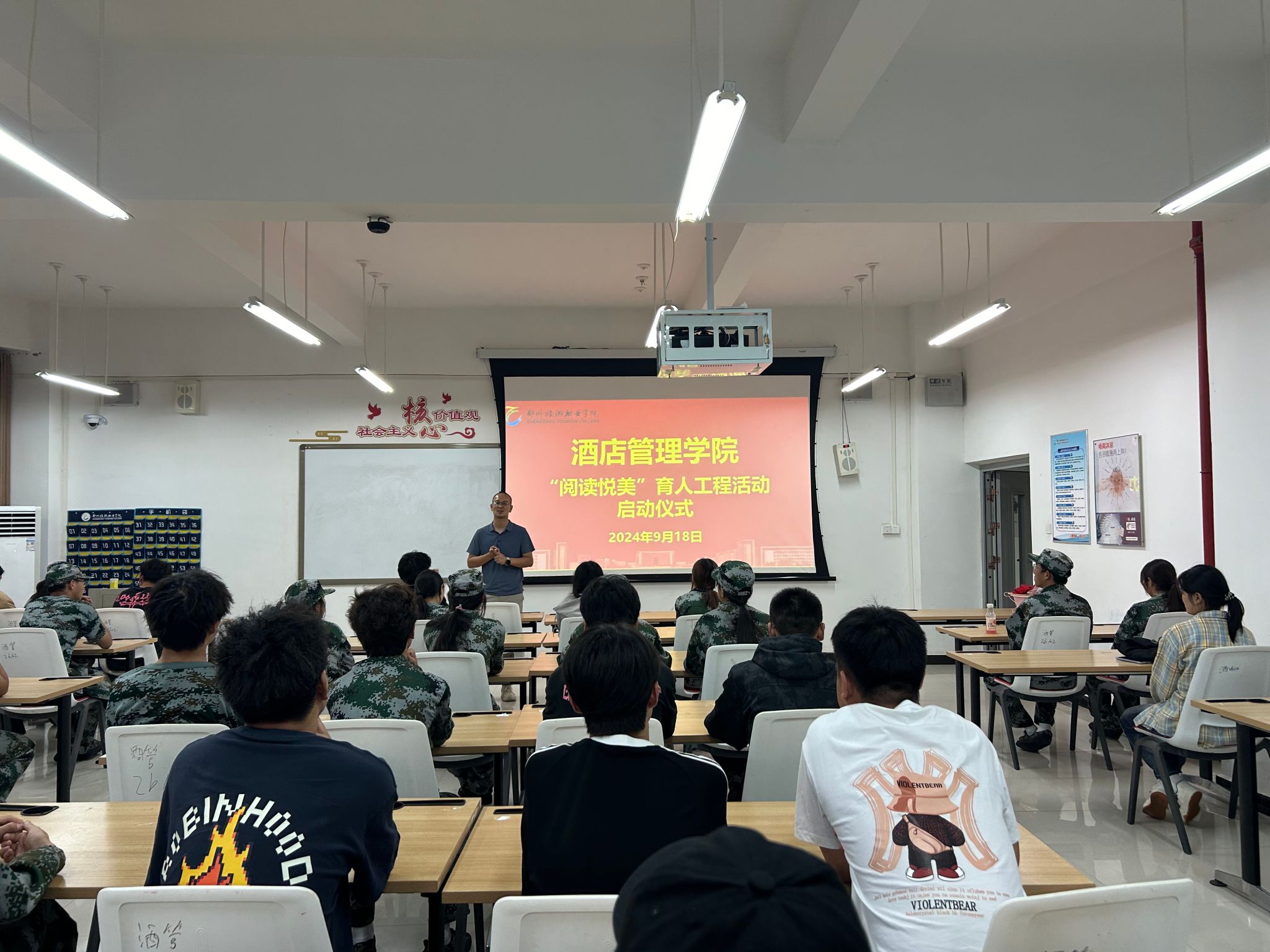 为了提升学生文化素养,深化学校优良学风,营造“爱读书、读好书、善读书”的浓厚氛围。酒店管理学院于9月18日在敏行楼102教室组织召开了“‘阅读悦美’育人工程活动启动仪式”,此次活动由孙孟珂老师主持。