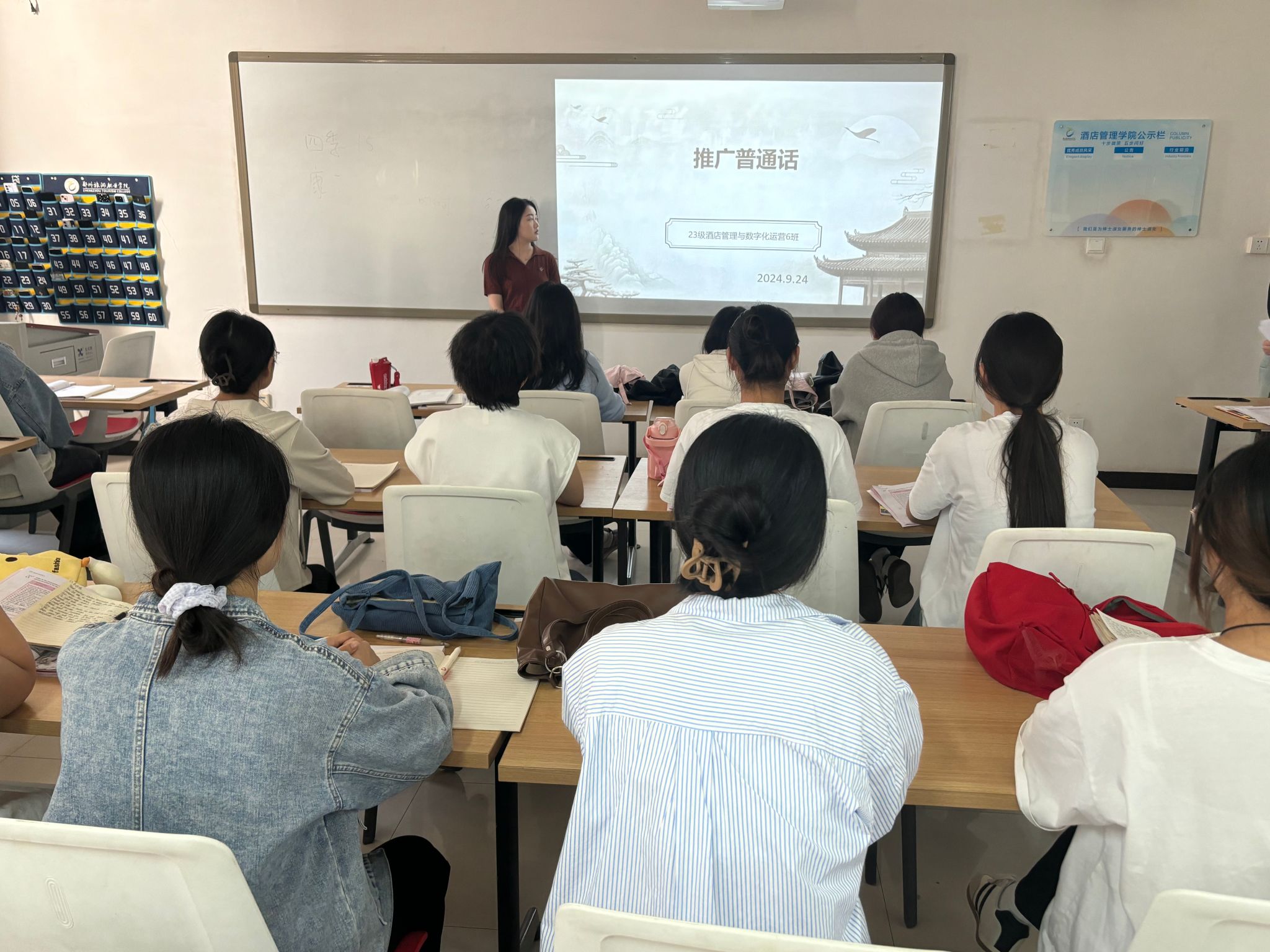 为全面加强普通话推广教育,传承弘扬以语言文字为载体的中华优秀文化,响应国家推广普通话的号召,营造和谐、文明的学习环境,酒店管理学院9月24日在各班开展“推广普通话”主题班会。