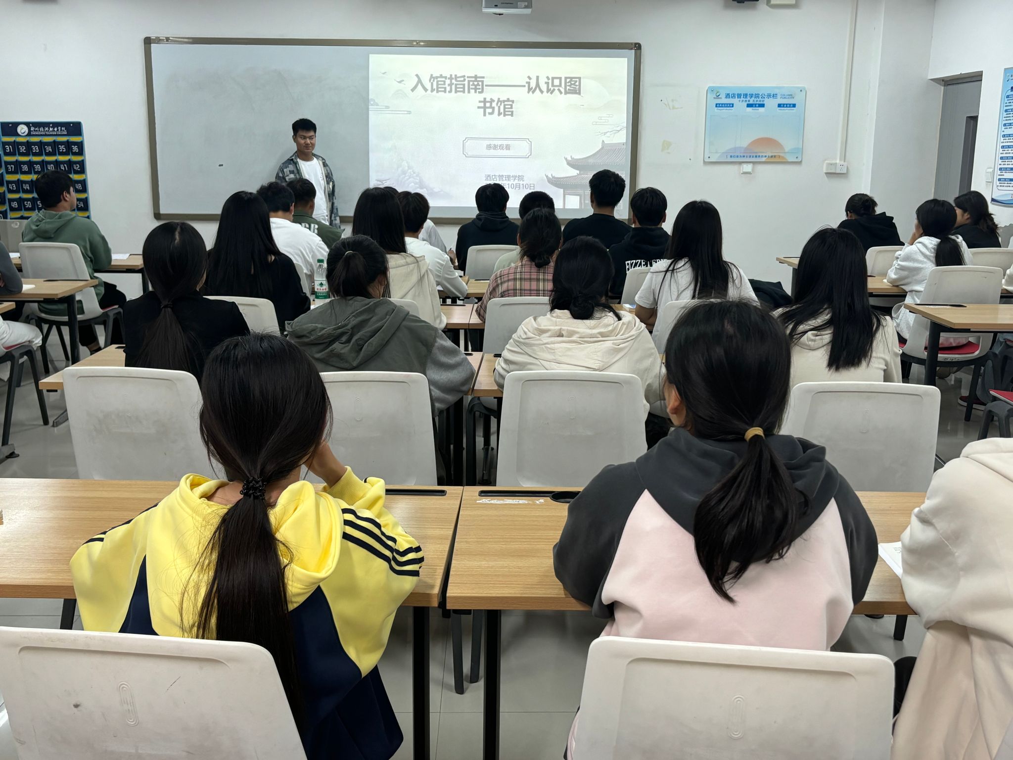 为了让新生能够更好的认识、了解和利用学校图书馆的馆藏资源,酒店管理学院于本周在敏行楼组织各班召开“新生入馆指南”主题班会。