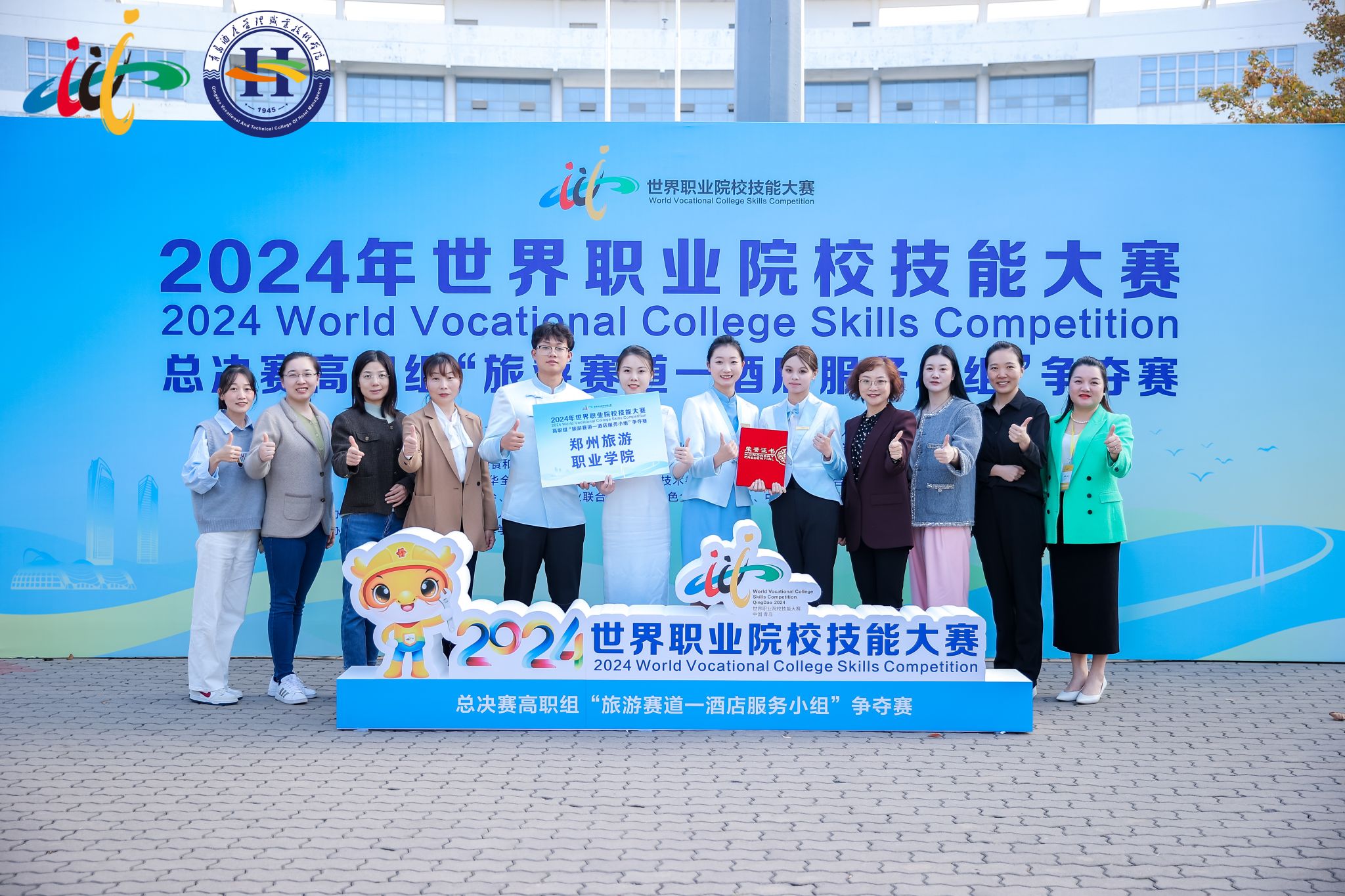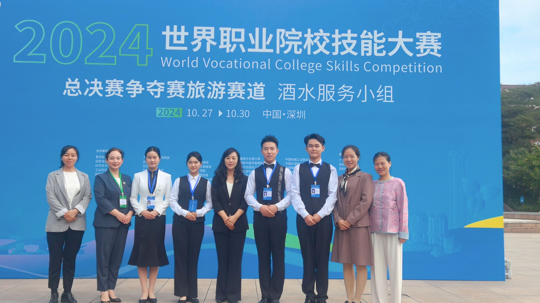2024年10月27日至10月31日,2024年世界职业院校技能大赛总决赛旅游赛道(酒水服务小组、酒店服务小组)争夺赛,分别在深圳职业大学和青岛酒店管理职业技术学院精彩呈现,来自全国各省(自治区、直辖市)高职院校的近60支代表队同台竞技。酒店管理学院酒水服务参赛团队张焱、娄闫、闫帅澎、尚之一四位同学和酒店服务参赛团队蔡炎惠、刘钰佳、鲁雨菲、杨哲文四位同学凭借卓越表现,分别斩获金奖和银奖。