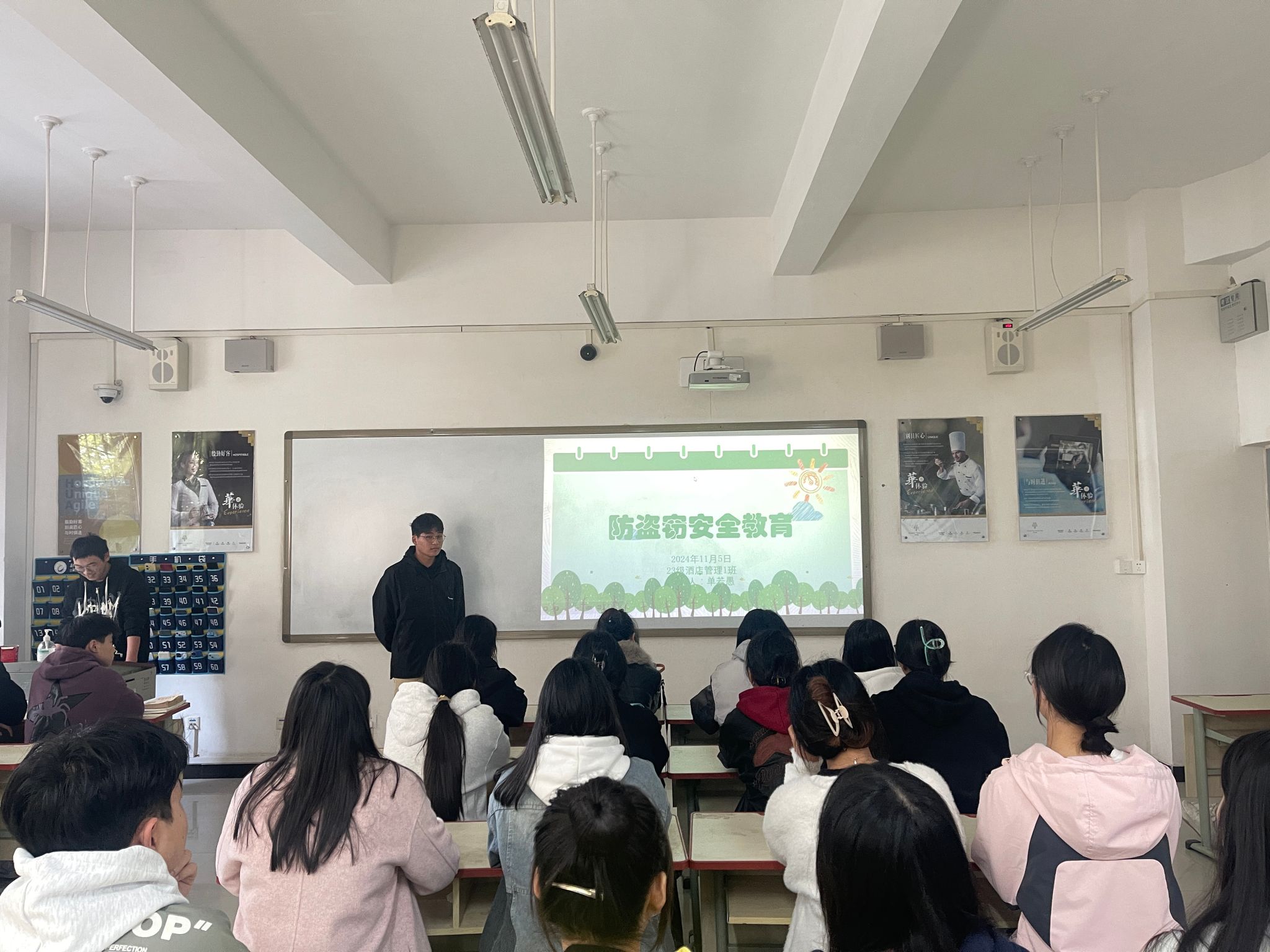 为了提高同学们的安全防范意识,有效预防盗窃事件的发生,酒店管理学院于本周在敏行楼组织召开了“预防盗窃安全教育”主题班会。