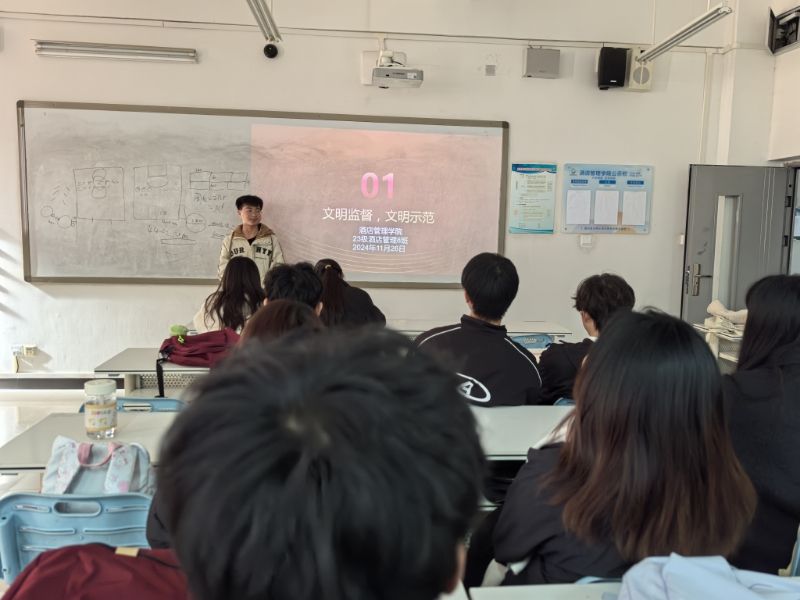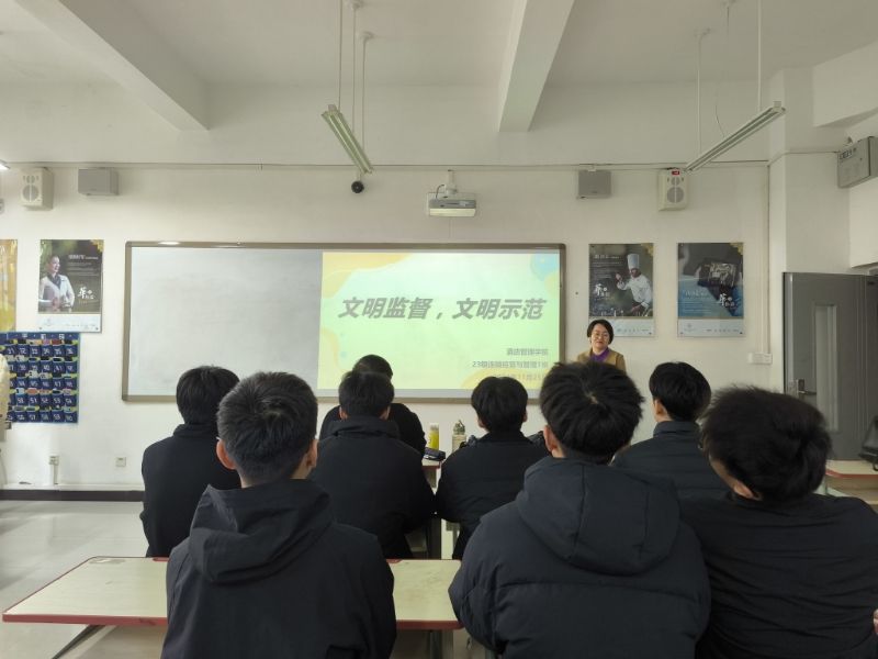为了提升学生文明素养,营造和谐校园环境,树立良好社会风尚,增强社会责任感。酒店管理学院于本周在敏行楼组织召开“文明监督,文明示范”主题班会。