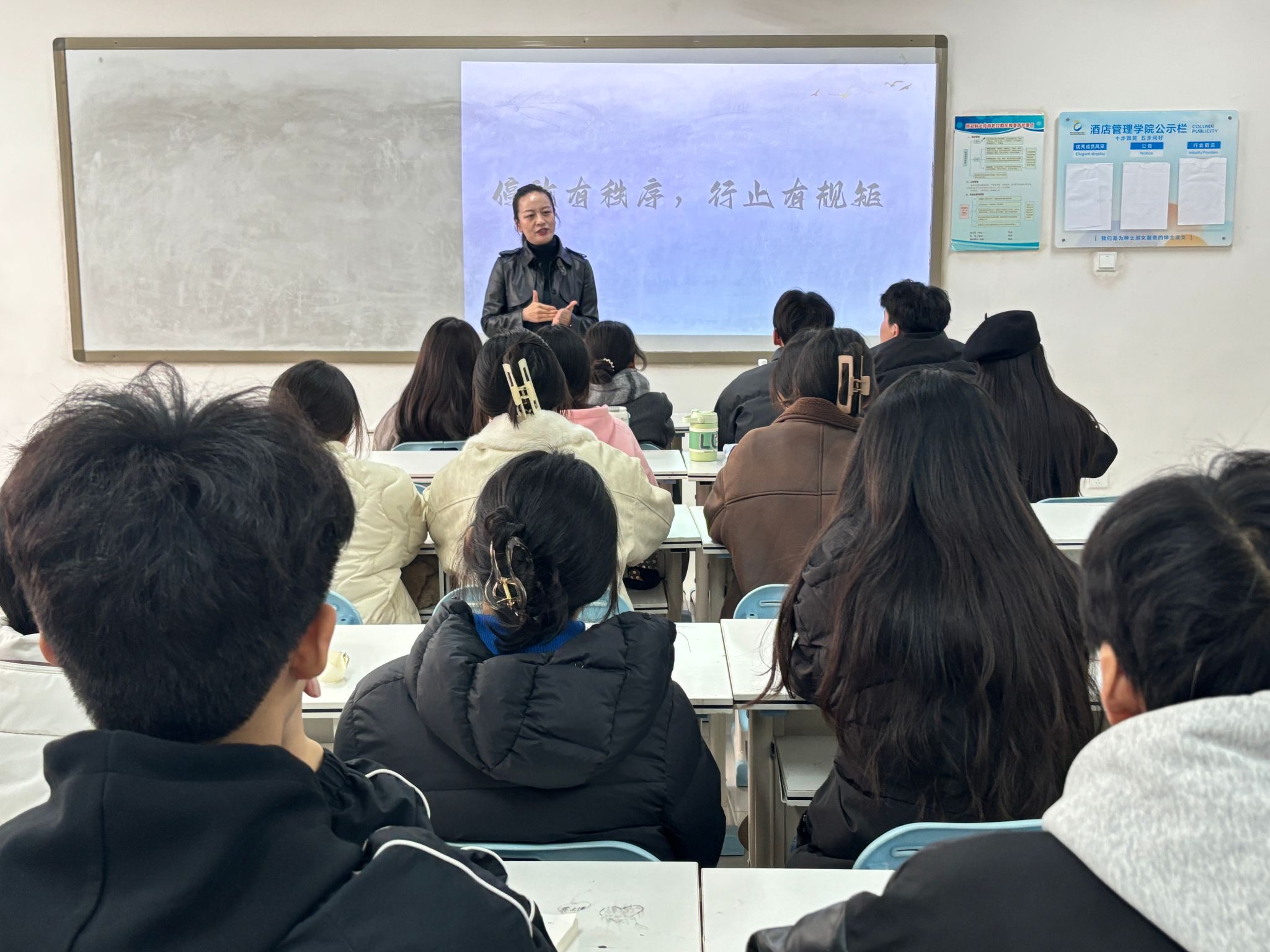 为了让同学们深刻认识到自行车乱停乱放对校园环境和秩序的不良影响,增强规范停车意识,培养文明骑行、有序停放的良好习惯,共同营造整洁、安全、和谐的校园环境。酒店管理学院于本周在敏行楼组织召开“停放有秩序,行止有规矩”主题班会。