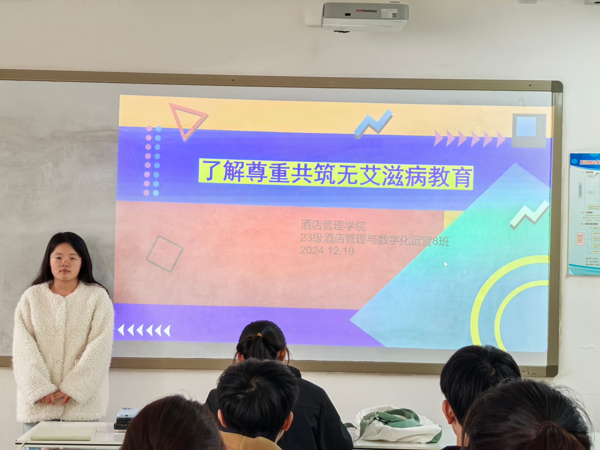 为了让同学们充分了解艾滋病的传播途径,认识到艾滋病的危害性,进而提高自我保护意识,珍惜生命,远离感染,酒店管理学院于本周组织召开“了解、预防、尊重,共筑无艾未来”主题班会。