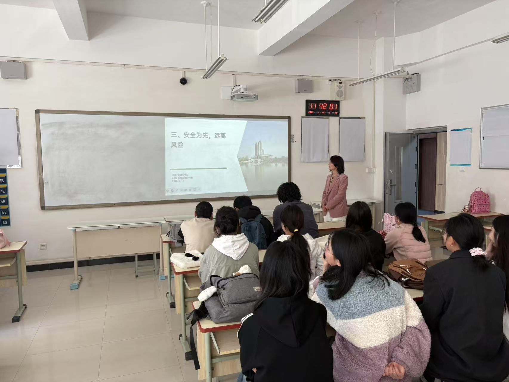 为了保障学生的身心健康和安全,明确行为规范,倡导健康生活,共同营造安全、健康、和谐的校园环境。酒店管理学院组织召开“安全为先,远离风险”主题班会。