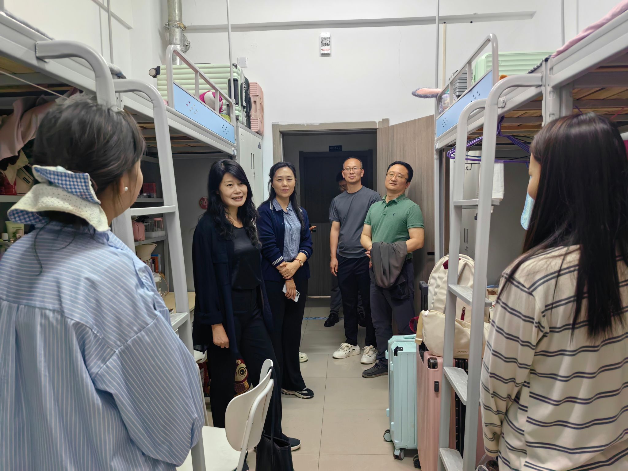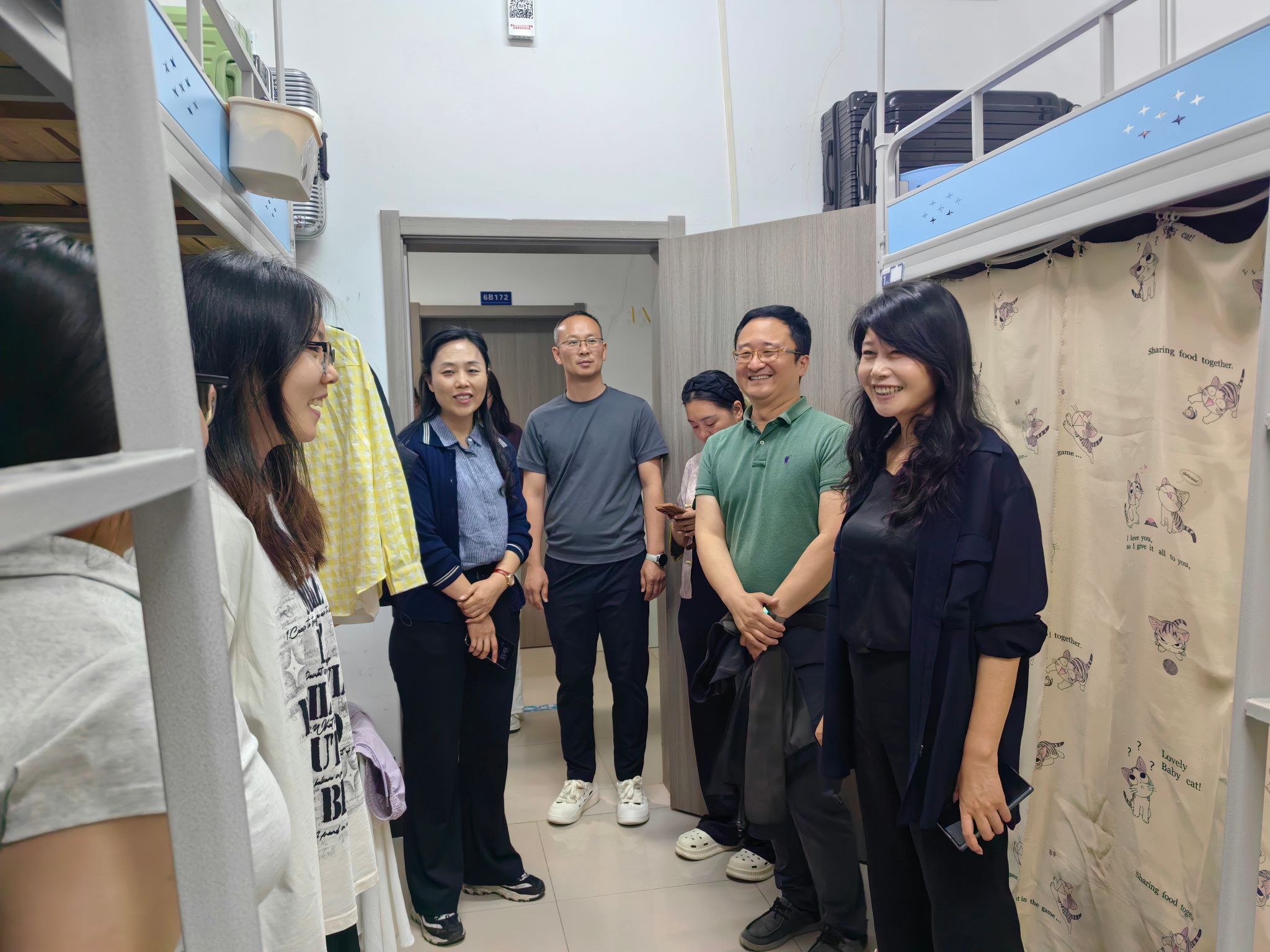 走访过程中,王书记与同学们进行亲切交流,详细询问同学们的假期安排、学习情况、生活情况以及遇到的困难和需求,同学们踊跃分享了学习生活情况和对未来的憧憬与规划。走访期间,学院宿舍环境整洁、物品归置有序,充分彰显了酒店管理学院同学们积极向上的精神风貌。王书记强调:“学生宿舍不仅是生活空间,更是思政教育的重要阵地,要将宿舍打造成思想引领、学风建设、文化浸润的育人载体。”