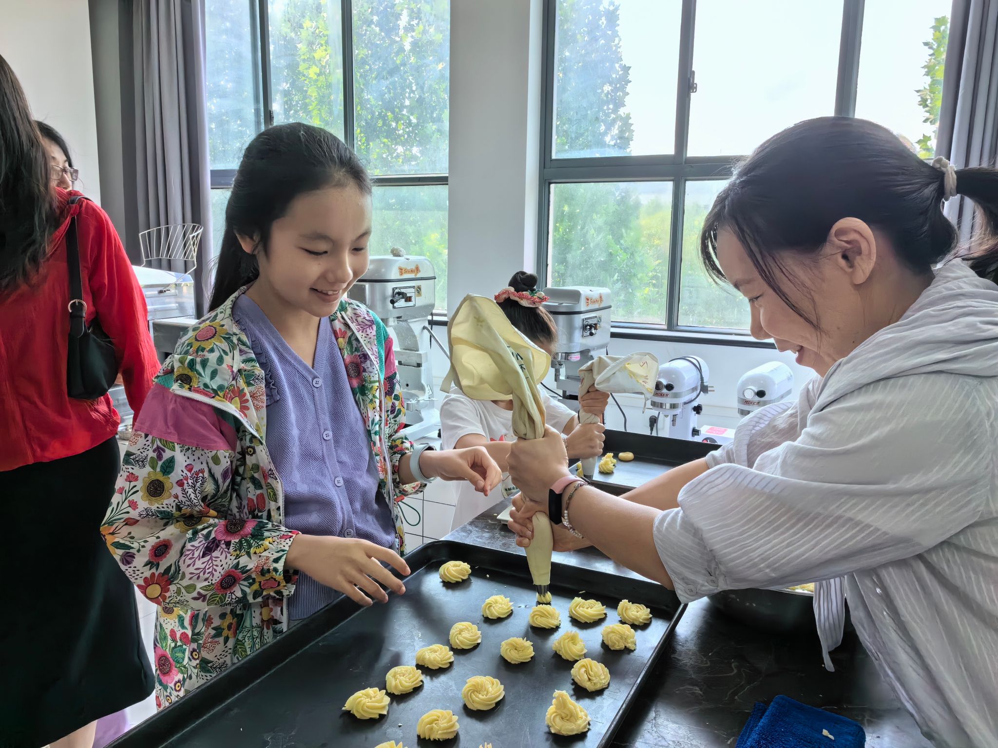 活动现场,孙孟珂老师耐心讲解了曲奇的制作方法,小朋友们也认真学习,兴致勃勃地开始制作属于自己的曲奇饼干,家长们则在一旁记录这温馨的时刻,现场洋溢着欢声笑语。活动最后,每位小朋友都收到了学院分工会特别准备的精美伴手礼,为即将到来的儿童节留下美好回忆。