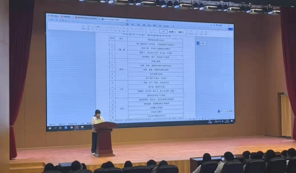 会上,闫艳老师就文明离校的具体要求进行了详细阐述,包括办理相关手续、清理宿舍卫生等事项,以确保离校工作的顺利进行。她强调,文明离校是每位毕业生应尽的责任和义务,也是展现大学生文明素养的重要体现,呼呼吁同学们要自觉遵守校规校纪,维护校园环境的整洁与美丽;要珍惜师生情谊,感恩母校,以实际行动回报社会。