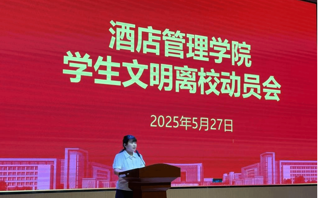 为统筹推进23级学生安全文明离校工作,5月27日下午,酒店管理学院在敏行楼小礼堂召开文明离校动员会。