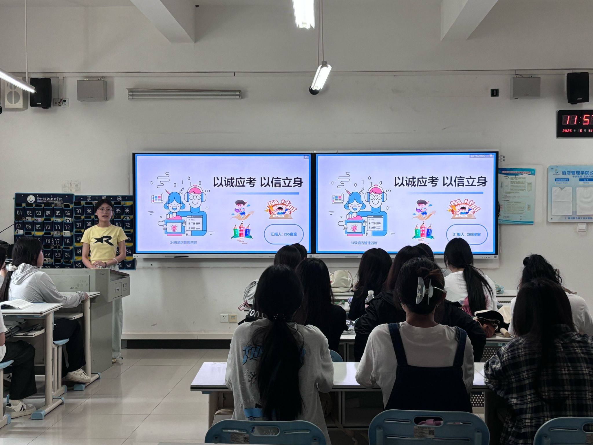 为强化学生诚信意识,营造风清气正的考试环境,培养学生高尚道德品质,酒店管理学院于本周组织召开“以诚应考,以信立身”主题班会。