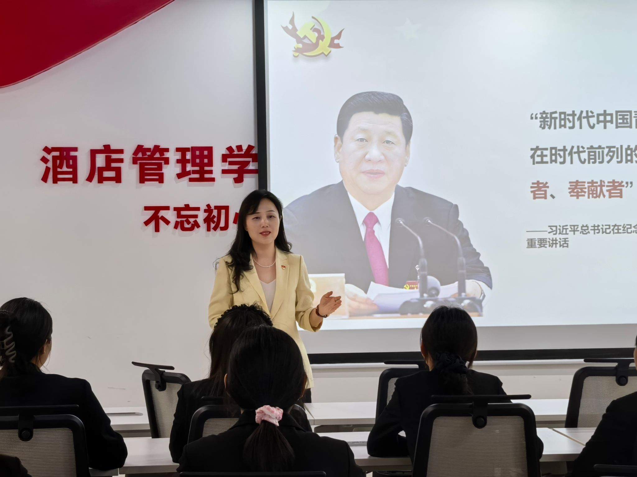 为深入贯彻落实党的教育方针,加强入党积极分子的党性修养,提升党组织的凝聚力,6月23日,酒店管理学院院长肖靖以《新时代青年的历史使命》为主题在敏行楼党员活动室为学院入党积极分子带来了一堂深刻生动的党课,引导青年学子深刻把握时代责任,将个人成长融入国家发展大局