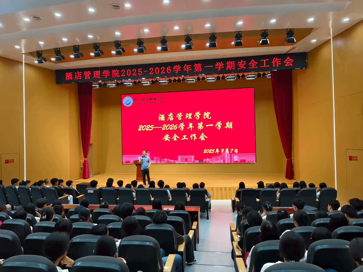 为保障2025级新生报到工作顺利有序开展,统筹新学期新老生校园安全管理,酒店管理学院于9月7日召开2025-2026学年第一学期安全工作会。会议由学院党总支书记郭防主讲。