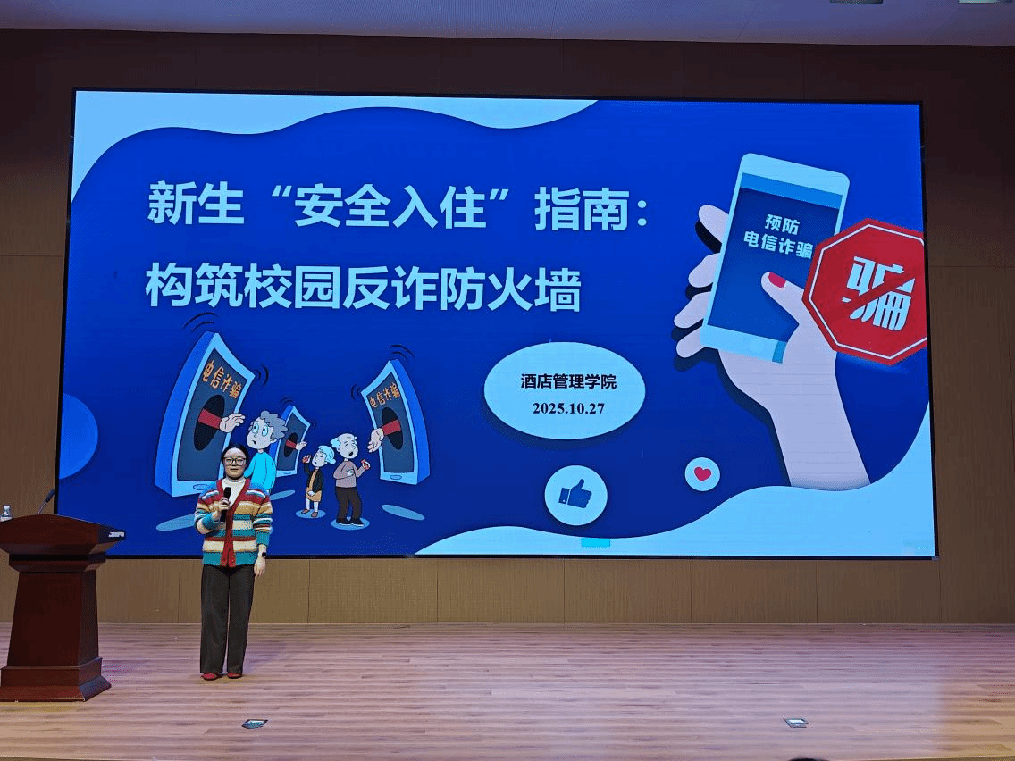 为了提升新生防范电信诈骗的意识与能力,酒店管理学院围绕“新生‘安全入住’指南:构筑校园反诈防火墙”主题,开展预防电信诈骗专题教育,帮助新生认清诈骗套路,守护财产安全。