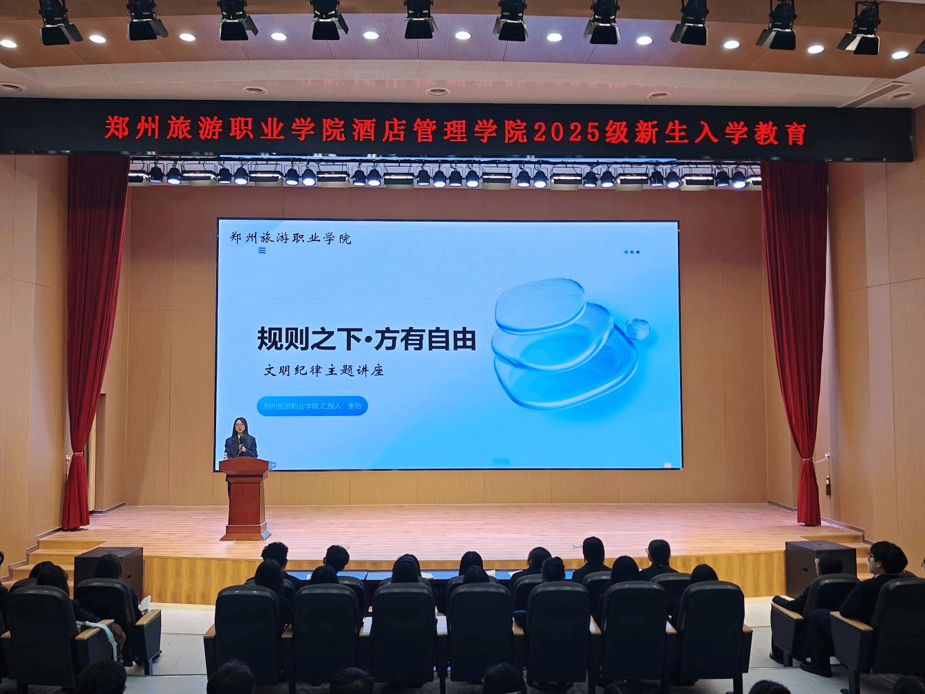 为了强化学生文明素养与纪律意识,营造良好校园秩序,酒店管理学院在学院小礼堂开展“规则之下·方有自由”文明纪律主题讲座由张玙老师主讲,25级学生代表参与。