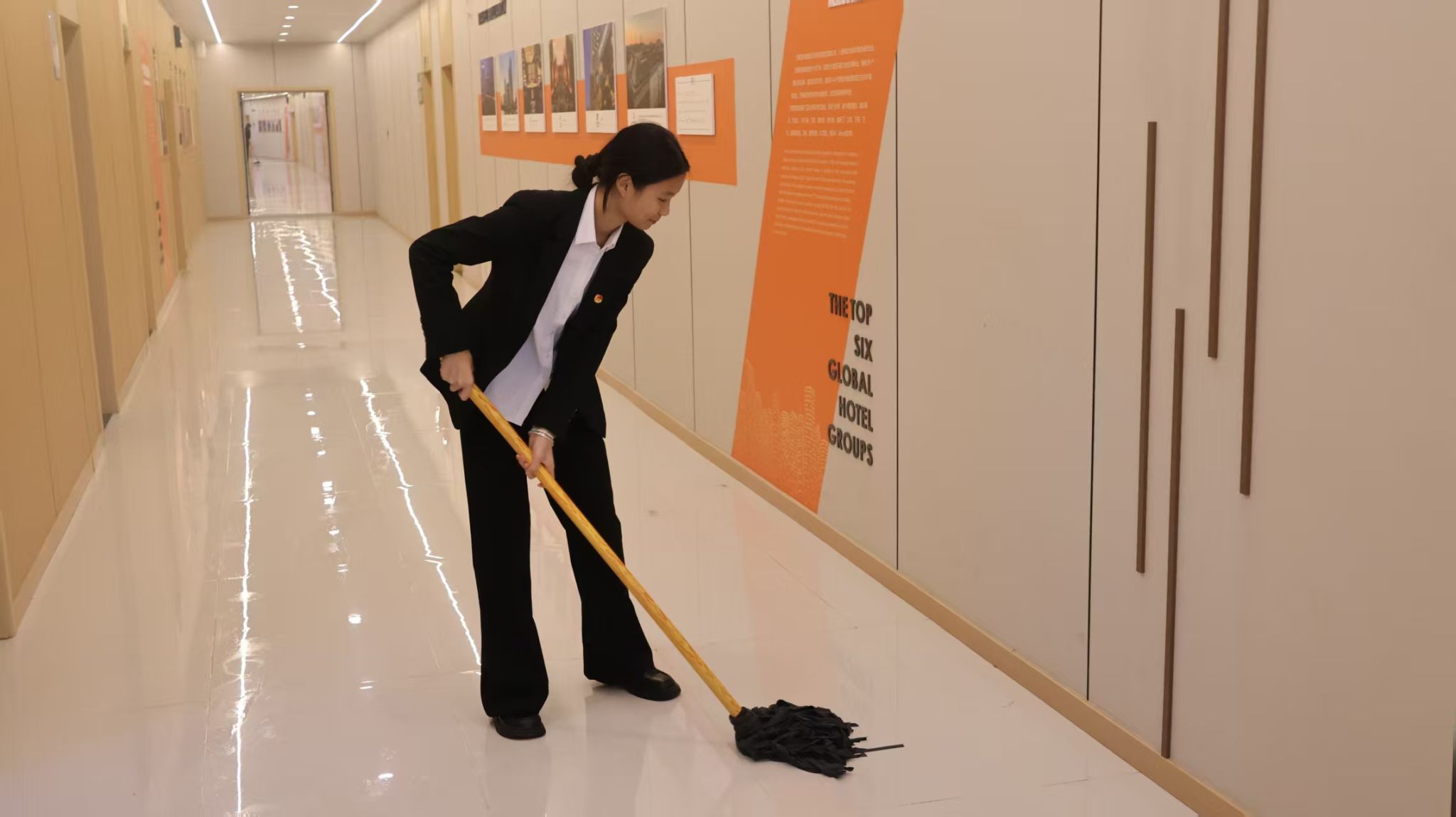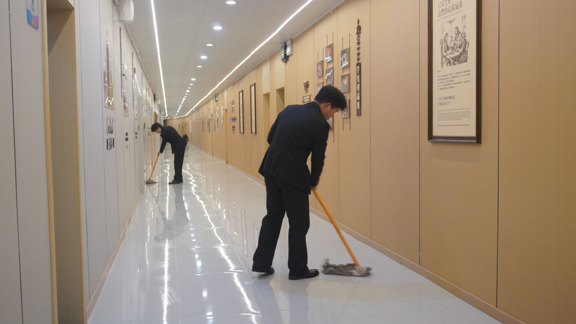 入党积极分子们身着统一志愿服装,带着饱满热情迅速投入服务。大家不分组别、齐心协力,手持扫帚、拖把等工具,聚焦实训楼开展清洁工作。同学们弯腰俯身,细致捡拾楼道出入口、走廊边缘、台阶缝隙里的纸屑等杂物,默契配合擦拭教室号码牌与宣传栏上的顽固污渍。现场干劲十足、氛围热烈,大家相互鼓劲、互帮互助,不放过任何卫生死角,为教学楼周边环境增添亮色,成为秋日里一道靓丽的风景线。