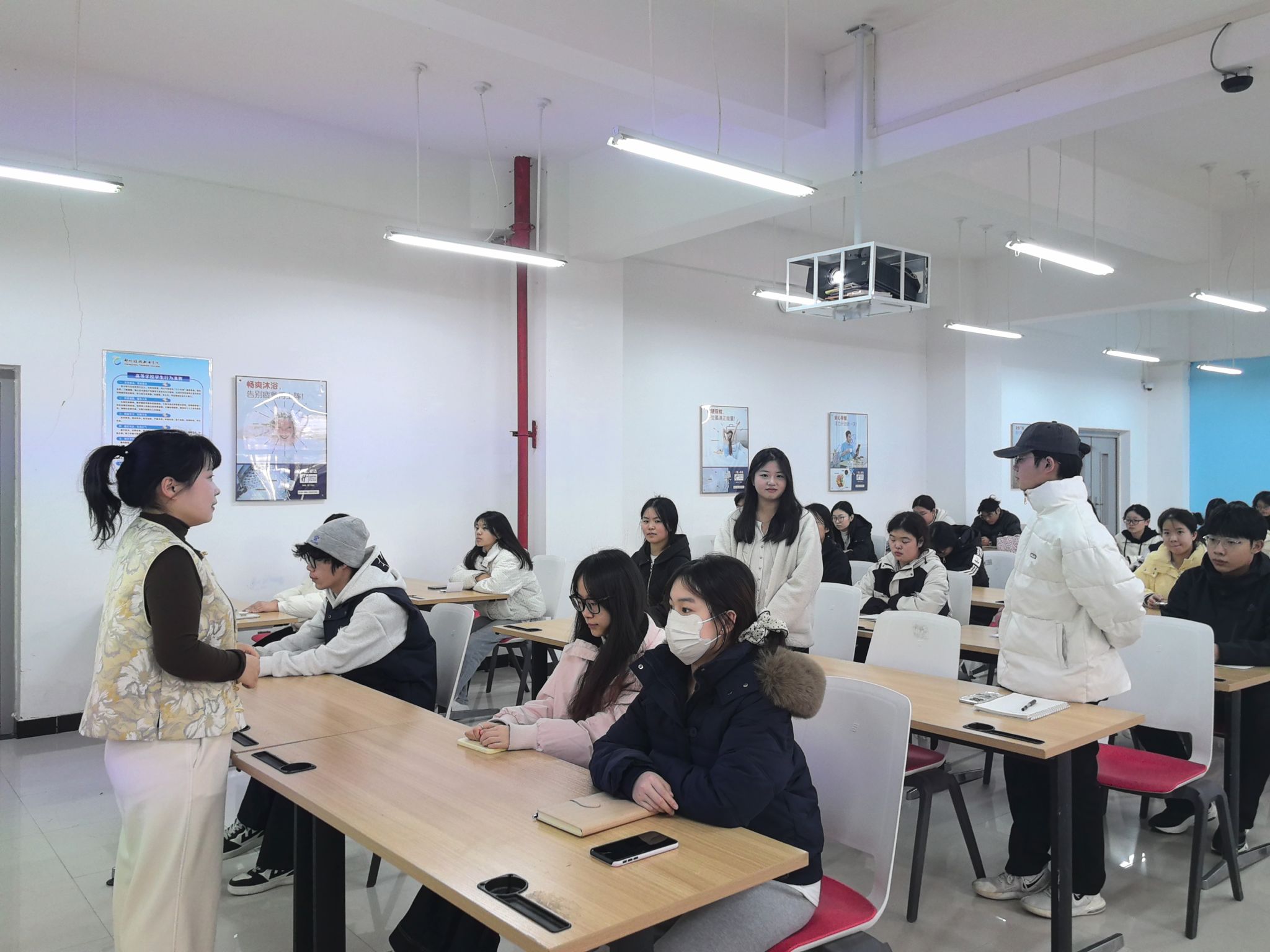 酒店管理学院闫艳老师围绕“朋辈心理互助的技巧与边界”这一主题展开了深入浅出的讲解。结合大学生实际生活中常见的人际交往、情绪管理、学业压力等现实问题,通过生动的案例剖析,详细阐述了同学们如何运用倾听、共情、积极关注等技巧与同学建立信任关系。她特别强调,要能够敏锐观察身边同学的心理状态变化,及时发现潜在危机信号,同时必须清晰认识自身能力的边界,不做超越能力的“心理咨询”,而是要及时、有效地向辅导员或专业心理咨询老师报告和转介。在随后的自由交流与案例研讨环节,大家结合自身在生活中遇到的困惑和难题,进行了积极的分享和讨论。