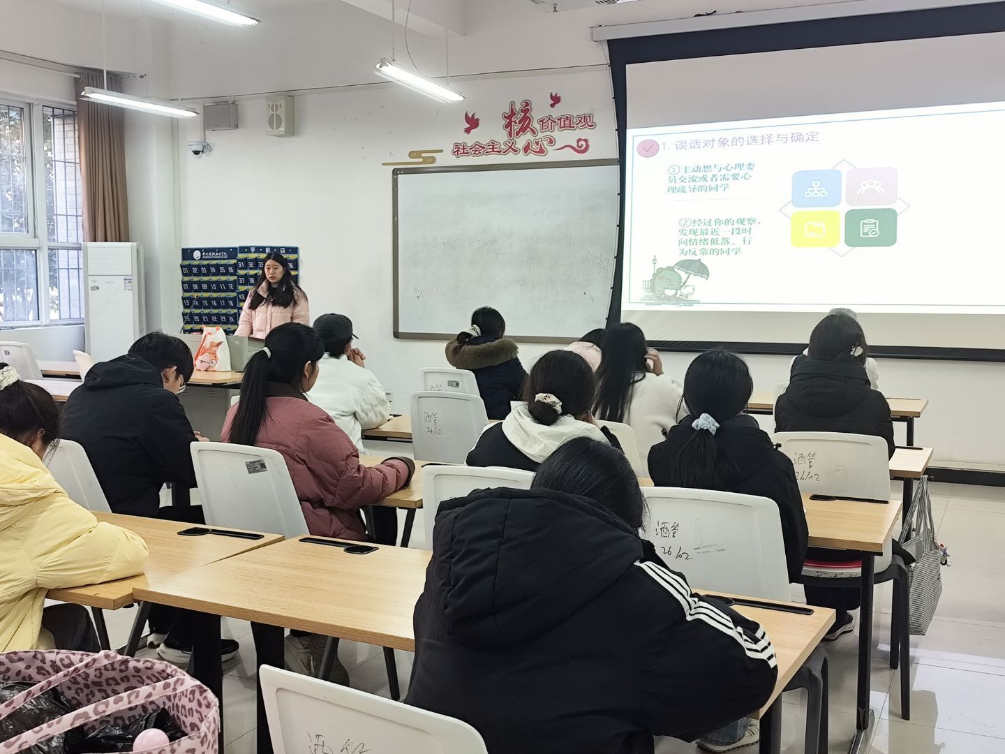 为进一步提升同学们的沟通交流能力,加强朋辈心理互助队伍建设,酒店管理学院于2025年11月19日,在敏行楼102教室召开朋辈沙龙学习交流会。