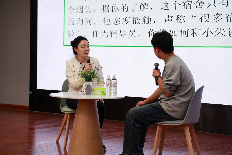 本次大赛分为初赛笔试、复赛案例分析及决赛谈心谈话三个环节,全面考察辅导员的理论功底、分析解决实际问题能力和与学生沟通引导能力。在初赛笔试阶段,闫艳、牛小月、赵苏楠三位老师以优异的成绩顺利晋级;在复赛案例分析环节,她们针对学生管理、思想引导、心理辅导、就业指导等典型工作场景,提出切实可行的解决方案,展现了较强的应变能力和职业素养;最终在决赛谈心谈话环节,三位老师面对模拟情境,以亲和、专业、耐心的沟通方式,生动体现了辅导员在育人过程中的引导作用与情感温度。