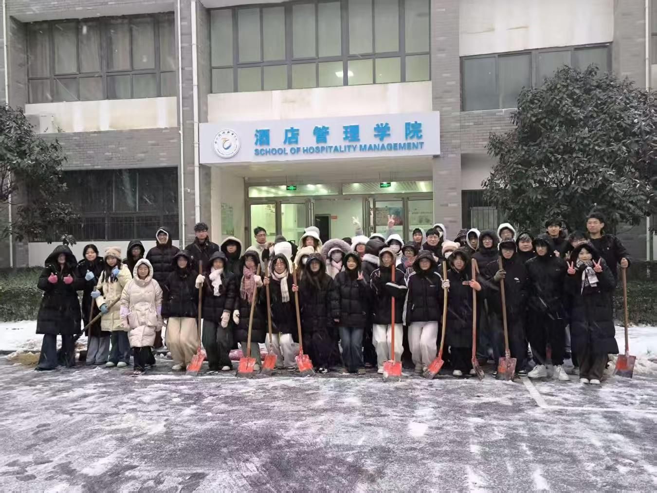 此次扫雪活动不仅改善了校园通行环境,更有效增强了学生的劳动观念与志愿服务精神。未,酒店管理学院将持续开展此类实践活动,引导学生在劳动中锤炼品格,增长才干。自觉践行“奉献、友爱、互助、进步”的志愿精神,为建设安全文明校园贡献青春力量。