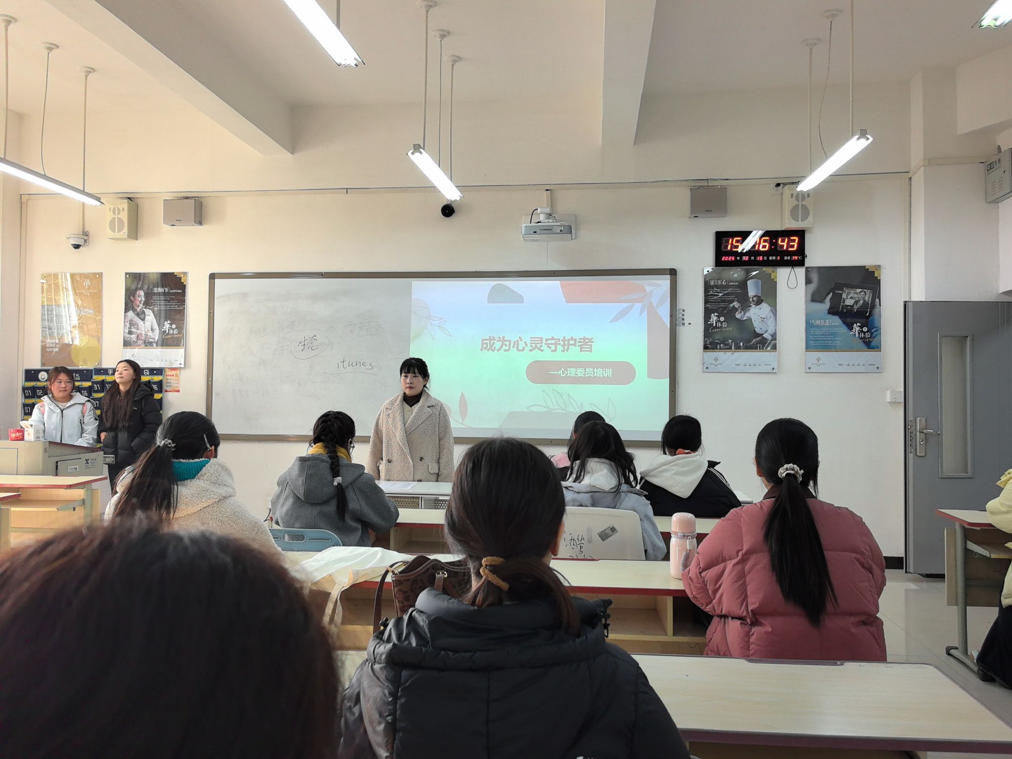为切实强化班级心理健康教育力量,提升心理委员专业素养与实践能力,充分发挥其在班级心理关怀中的桥梁纽带作用,酒店管理学院于12月15日组织召开“成为心灵守护者”心理委员培训会,学院全体班级心理委员和心教部成员共同参与培训,培训由闫艳老师主讲。
