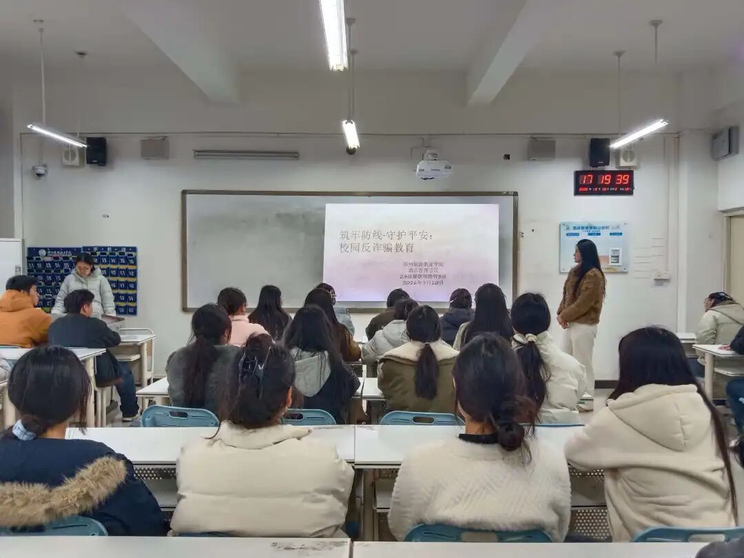 为切实守护学生财产安全,提升全体同学防范电信网络诈骗的意识与识别能力,酒店管理学院于本周在敏行楼召开 “筑牢防线・守护平安” 反诈骗教育主题班会。