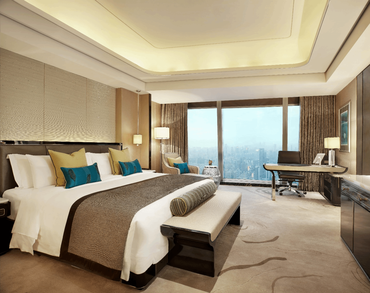 作为万豪国际集团旗下顶级奢华品牌,深圳瑞吉酒店矗立于罗湖金融区内,位于京基100大厦75层至100层,高443.8米,高耸于商务及购物中心基层之上,是城市天际线上的一道地标风景线。毗邻罗湖口岸,俯瞰香港美景及深圳全貌,欢迎世界宾客前来体验这里的优雅氛围和亲切服务