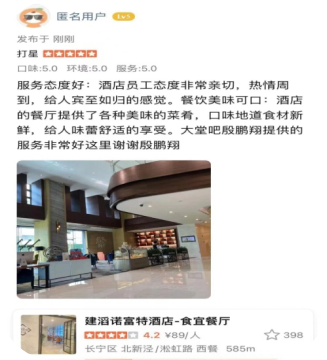 非常感谢贵校对人才的培养与输出。在2023年,加入上海建滔诺富特酒店实习的有杨芃垚、张凯、张振斌、李震、曹庆阳、殷鹏翔这6名优秀的同学。自6月进入工作岗位以来,他们表现优异,能够团结他人,做事认真踏实,工作热情友好。经过3个多月的努力,凭借在贵校所学的过硬技能和理论知识,他们得到了同事和客户们的认可。尤其是贵校学生殷鹏翔,任职美食吧实习生以来,多次被客户在网评中点名表扬,是酒店餐饮部不可或缺的年轻力量,也为其他同事树立非常出色的榜样。在酒店第三季度优秀员工的评选中,殷鹏翔以最高票数荣获了优秀实习生的荣誉。