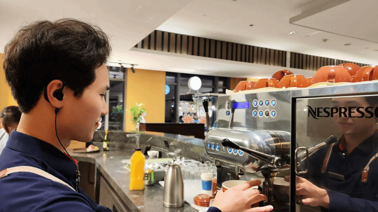 在这里,我们是学生但更是一个服务者。学校教会给我们技能,让我们在实习初期就能抢先一步做到从容应对各种复杂的问题。经过这段时间的实习,我明白了酒店服务这个行业真正的意义。