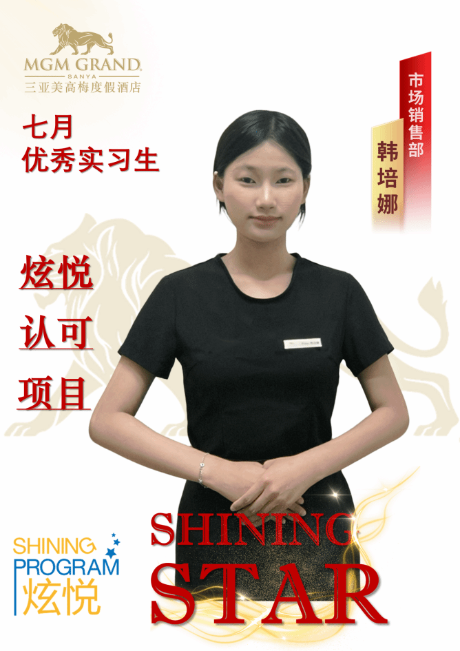 现于三亚美高梅酒店市场销售部实习