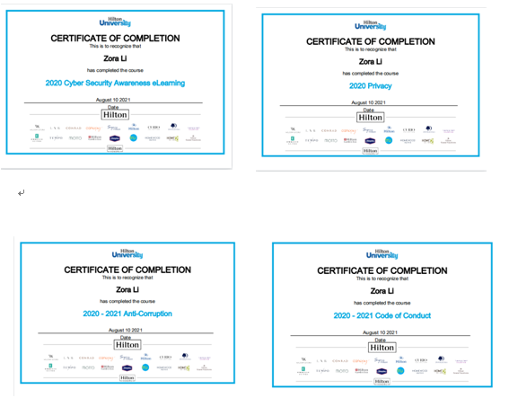 上海外滩华尔道夫酒店为我提供了很多全面发展自己的机会,酒店会有技能比赛、DIY蛋糕等等一系列活动,这些活动为我枯燥的生活增加了很多色彩。同时线上的希尔顿课程,以及线下酒店举行的管理技巧相关课程,不仅让我在现在的工作中受益,也让我对一些相关事情的处理变得游刃有余。