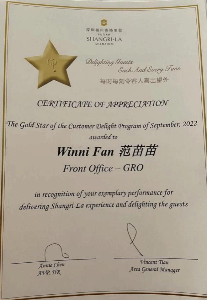 现于 深圳香格里拉前厅部实习