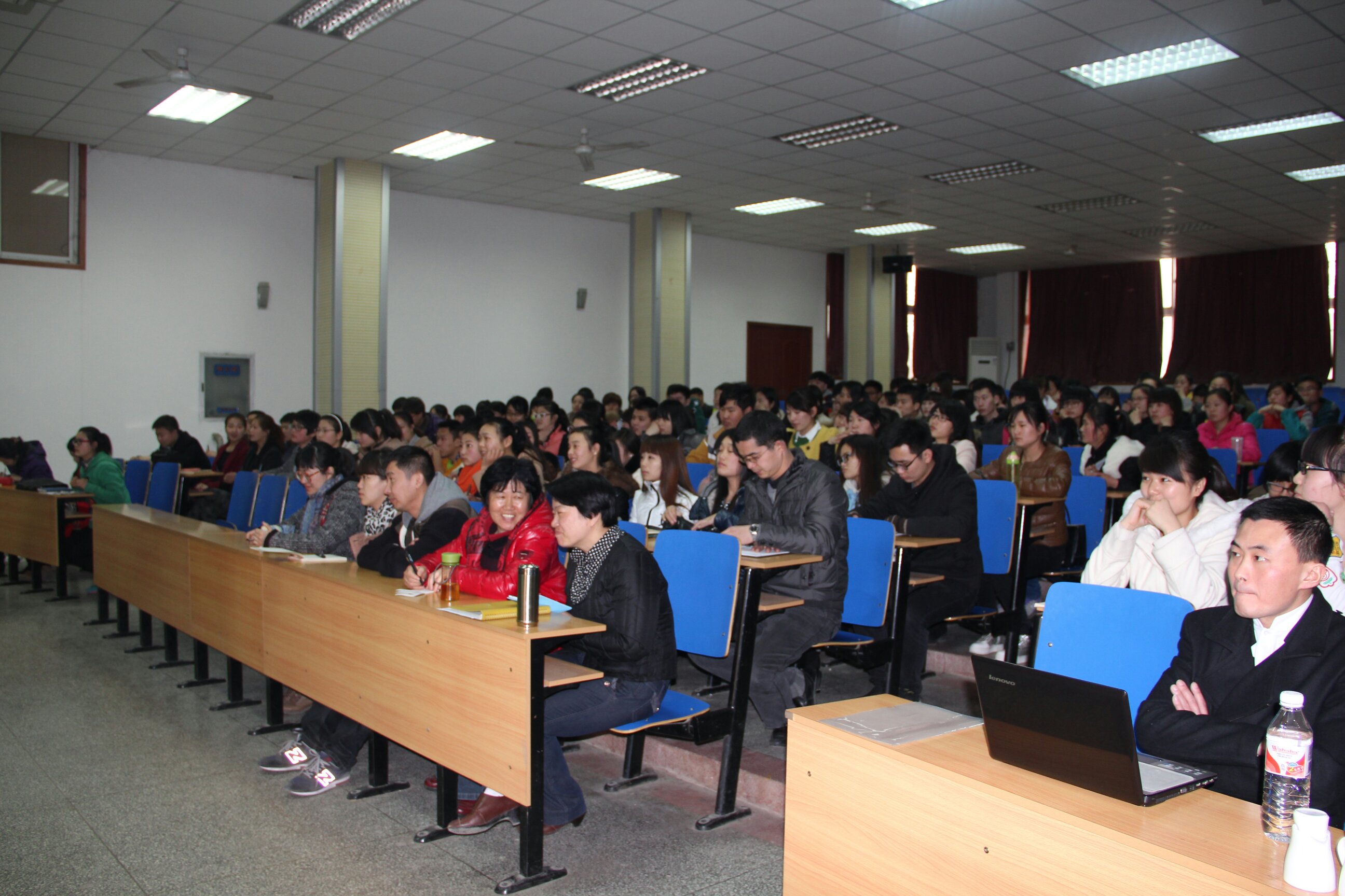 为了提升同学们的专业技能水平,帮助同学们更加深入了解咖啡文化。2014年3月4日酒店管理系在实训楼报告厅举办了“咖啡的艺术”讲座,邀请郑州建业艾美酒店酒吧经理谭田波及调酒师孙恩强给大家授课。酒店管理系系主任李晓东,副主任钱丽娟、党总支副书记陈海彬、团总支书记侯宁波及能力提升班全体学生等听取了此次讲座。
