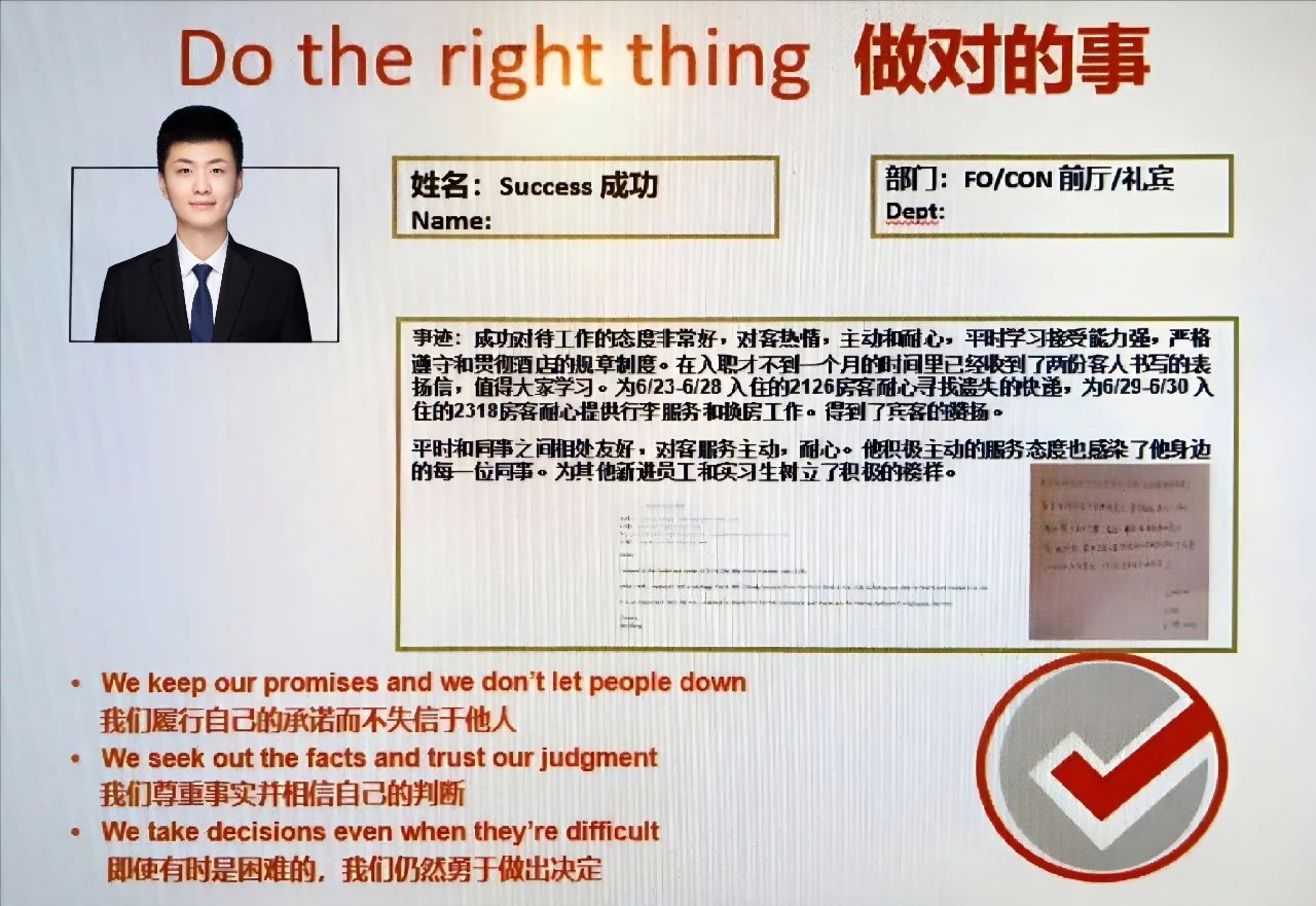 现于上海瑞金洲际酒店礼宾部实习