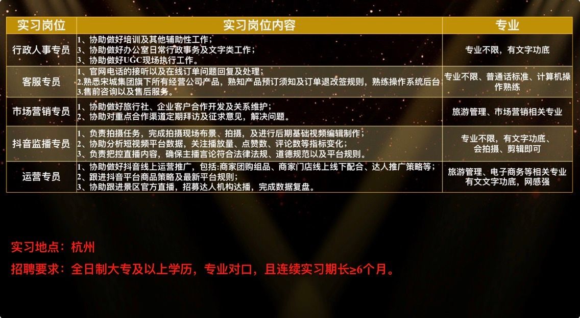 实习招聘(二十三)宋城演艺市场部(杭州宋城独木桥旅行社)实习介绍