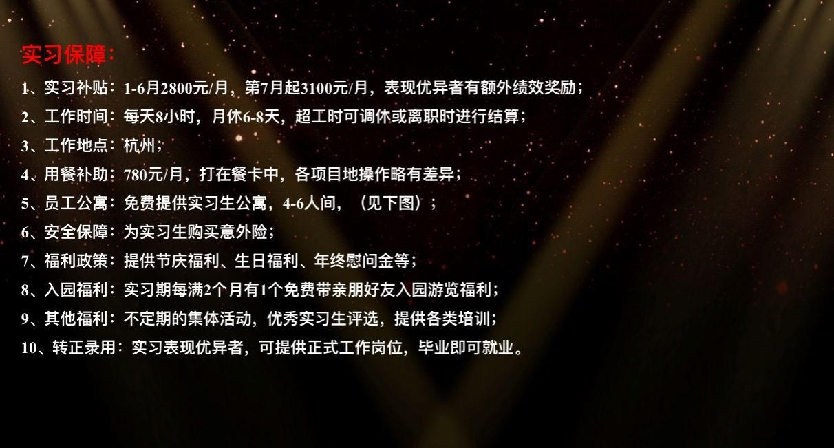 招聘行政人事专员、客服专员、市场营销专员、抖音监播专员、运营专员等岗位。要求全日制大专及以上学历,专业对口,连续实习期≥6个月。实习补贴1 - 6月2800元/月,第7月起3100元/月 ,有餐补、免费公寓、意外险等多项福利,表现优异者有额外绩效奖励及转正机会。