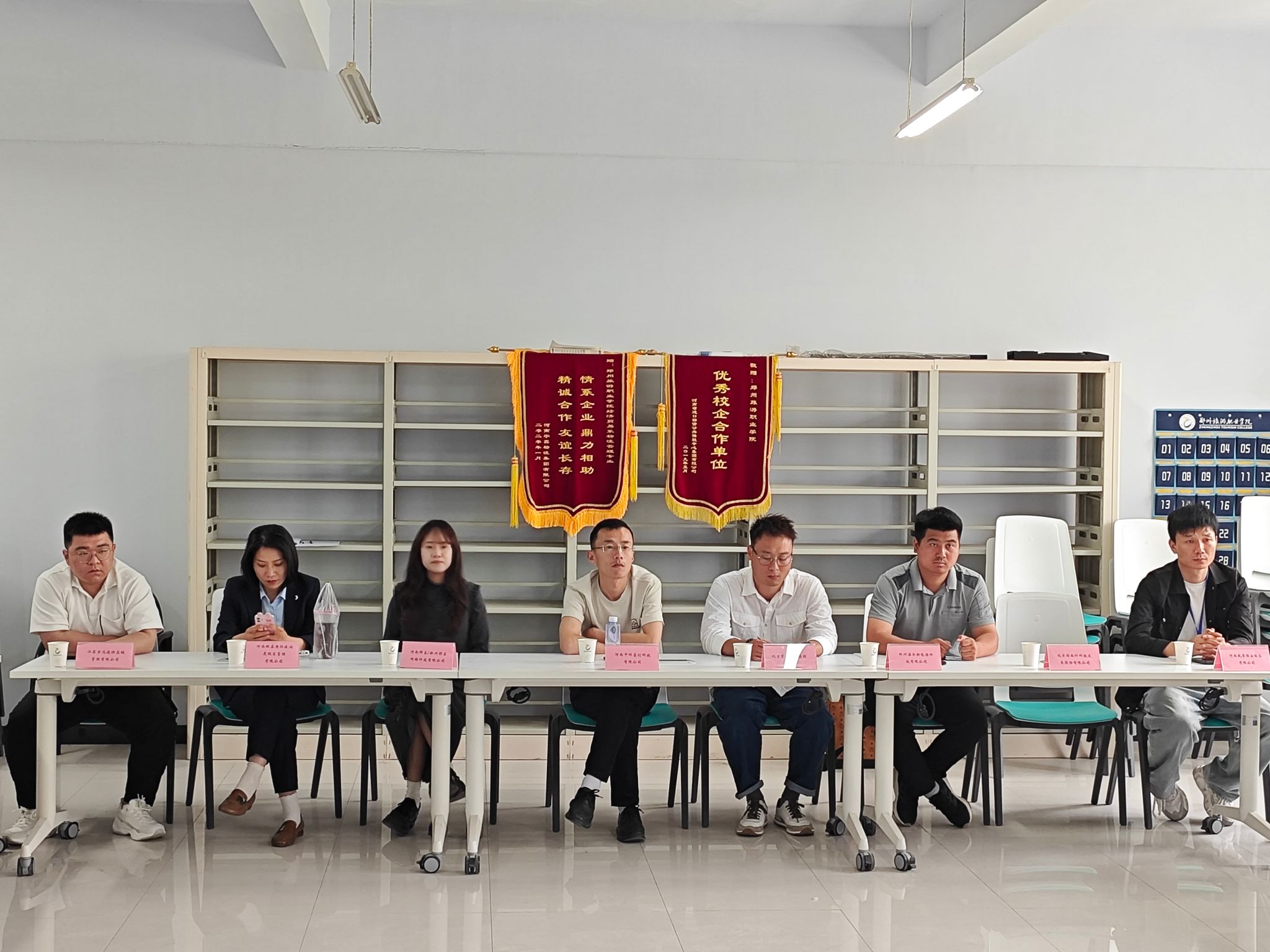 为深化校企合作、精准对接企业用人需求,2025年5月9日13:30,国际工商学院在1号楼(知新楼)B栋304室召开访企拓岗专题座谈会。学院院长秦合岗、党总支书记刘兆坤、副院长郭崖与来自物语(上海)企业管理有限公司、上海沃歌斯餐饮有限公司、郑州市四季安物流有限公司等34家企业代表齐聚一堂,共商人才培养与就业合作事宜。