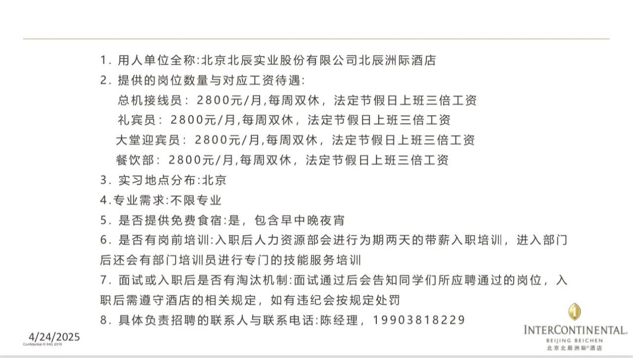 实习招聘(一)北京北辰洲际酒店实习介绍